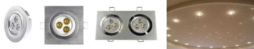 Споты делятся на три основные категории: встраиваемые, подвесные и накладные. Среди основных преимуществ, которыми обладают светодиодные споты для натяжных потолков, принято считать: