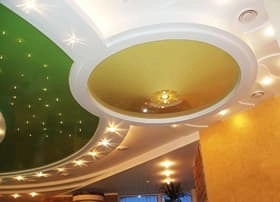 - Натяжной потолок при монтаже опускается на величину не менее высоты осветительного прибора, поэтому для экономии полезного пространства лучше выбирать более тонкие модели.