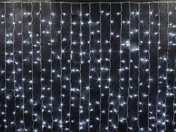 Световые занавесы состоят из вертикально ниспадающих кабелей, на которых расположены кристаллы-диоды. Все светодиодные лампочки создают эффект цельного светящегося полотна. При помощи данной гирлянды легко можно задекорировать фасад здания, окна, колоны, провисающие потолки, витрины супермаркетов и магазинов или карнизы больших офисных или торгово-развлекательных центров.