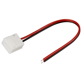 Одиночный коннектор с проводом 15см для подключения питания к ГЕРМЕТИЧНЫМ светодиодным одноцветным лентам шириной 8мм. Максимальный допустимый ток 3А, напряжение до 50 В. Цена за 1шт.