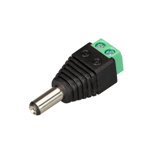 Коннектор для подключения светодиодных лент к сетевым адаптерам с DC-коннектором 5.5мм (напряжение не выше 48В). Одна сторона - клеммная колодка для провода ленты, вторая - DC-разъём (папа) для сетевого адаптера.