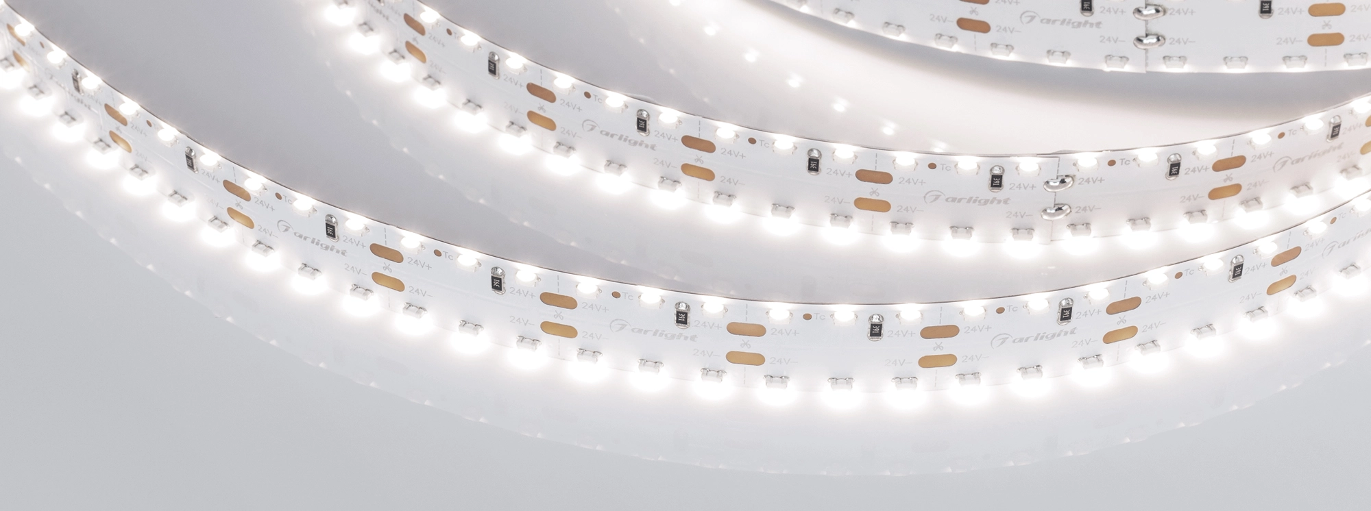 Мощность – один из критериев оценки яркости светодиодной ленты. Традиционно считают, что от мощности ленты напрямую зависит количество света. Ленты Arlight белого цвета выдают от 50 до 155 лм на 1 Вт мощности. Условно считается, что 7 Вт ленты заменяют 1