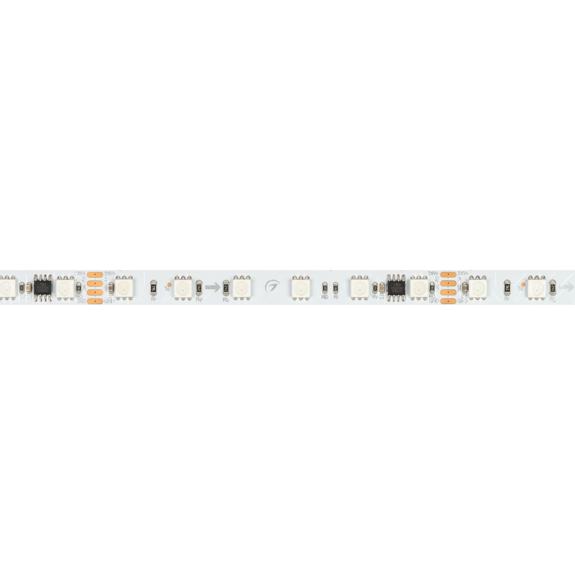 Светодиодная лента DMX серии B60 с микросхемой UCS512B3. Светодиоды SMD 5060, 60 шт/м, 10 pixels на 1 м (50 pixels на 5 м), 1 pixel = 6 светодиодов, белая плата шириной 10 мм, скотч 3М. Цвет RGB, угол 120°. Питание 24 В, мощность 15 Вт/м (75 Вт на 5 м). Размеры 5000x10x2.1 мм. Мин. отрезок 100 мм, 6 светодиодов. Цена за 1 м.