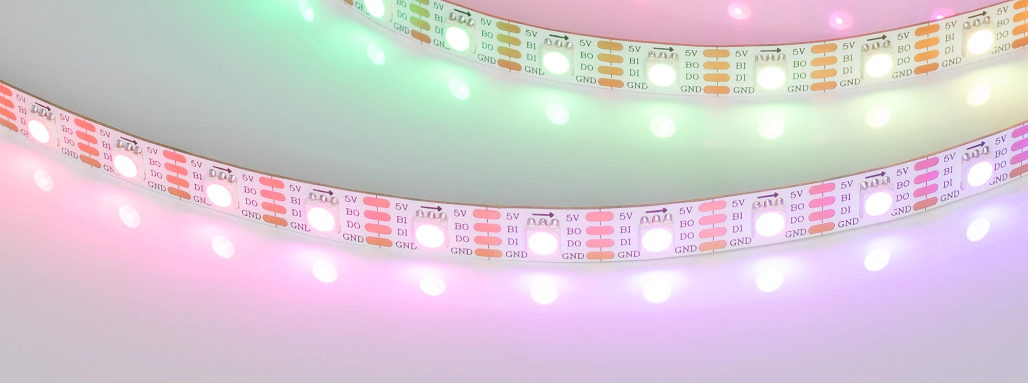 Светодиодная лента SPI серии B60 с микросхемой SK6812. Светодиоды SMD 5060, 60 шт/м, 60 pixels на 1 м (300 pixels на 5 м), 1 pixel = 1 светодиод, белая плата шириной 10 мм, скотч 3М. Цвет RGB, угол 120°. Питание 5 В, мощность 12 Вт/м (60 Вт на 5 м). Размеры 5000x10x2 мм. Мин. отрезок 16.7 мм, 1 светодиод. Цена за 1 м.