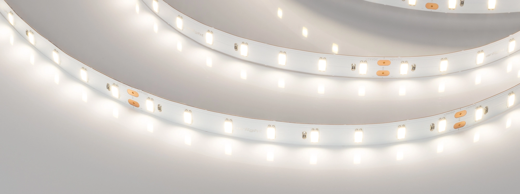 Мощность – один из критериев оценки яркости светодиодной ленты. Традиционно считают, что от мощности ленты напрямую зависит количество света. Ленты Arlight белого цвета выдают от 50 до 155 лм на 1 Вт мощности. Условно считается, что 7 Вт ленты заменяют 1