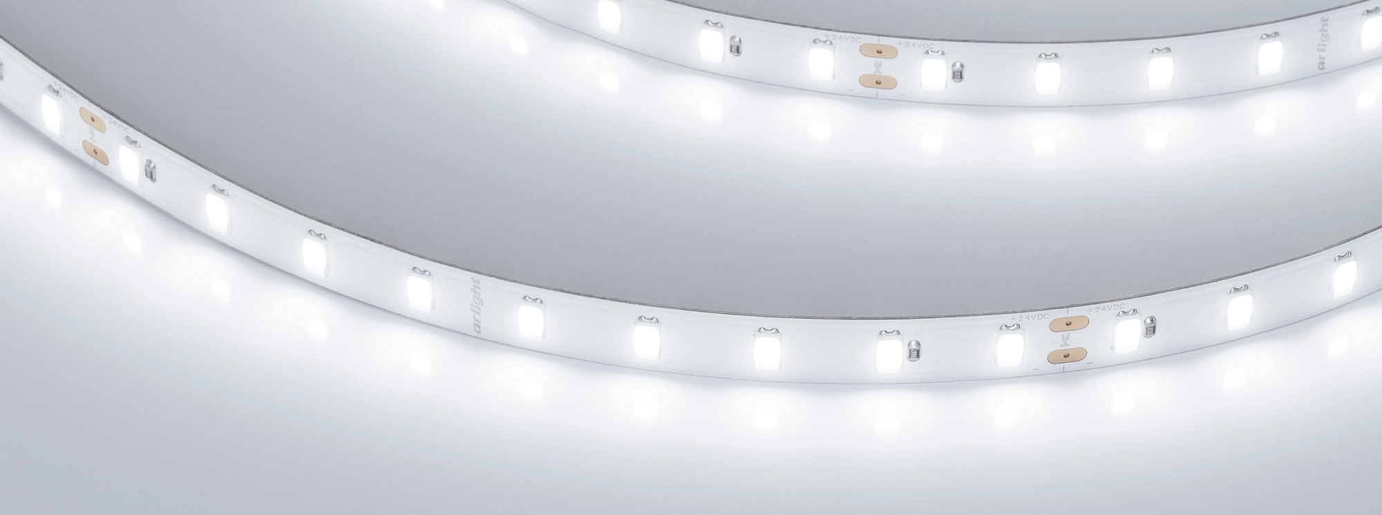 Мощность – один из критериев оценки яркости светодиодной ленты. Традиционно считают, что от мощности ленты напрямую зависит количество света. Ленты Arlight белого цвета выдают от 50 до 155 лм на 1 Вт мощности. Условно считается, что 7 Вт ленты заменяют 1