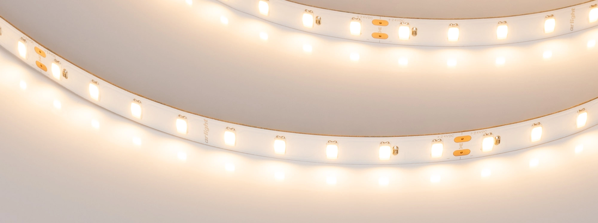 Мощность – один из критериев оценки яркости светодиодной ленты. Традиционно считают, что от мощности ленты напрямую зависит количество света. Ленты Arlight белого цвета выдают от 50 до 155 лм на 1 Вт мощности. Условно считается, что 7 Вт ленты заменяют 1