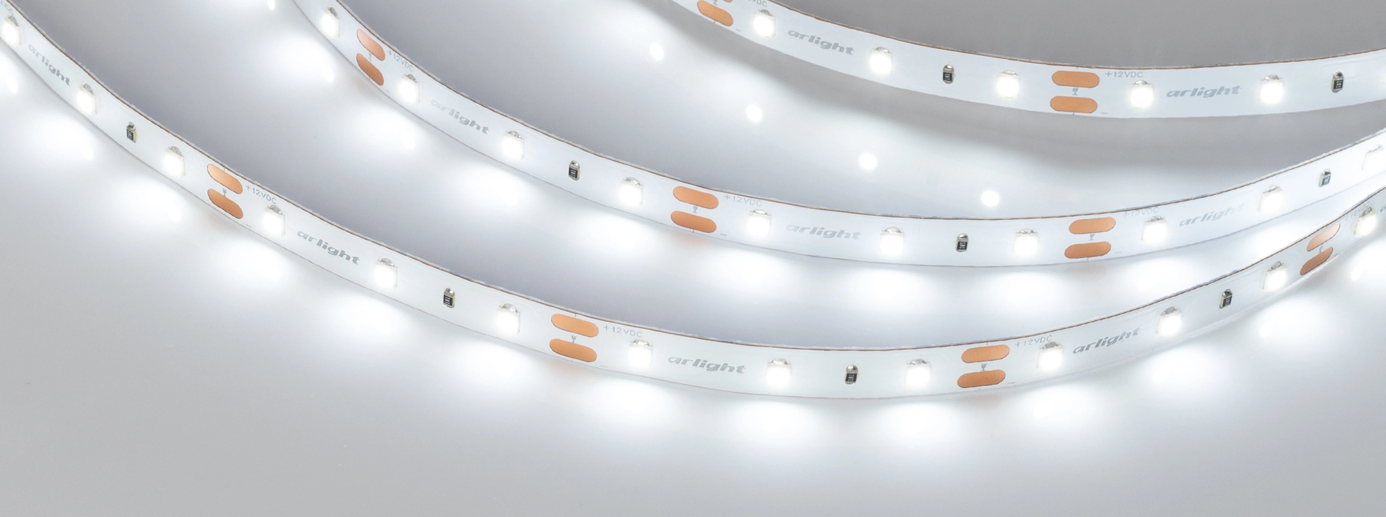 Мощность – один из критериев оценки яркости светодиодной ленты. Традиционно считают, что от мощности ленты напрямую зависит количество света. Ленты Arlight белого цвета выдают от 50 до 155 лм на 1 Вт мощности. Условно считается, что 7 Вт ленты заменяют 1