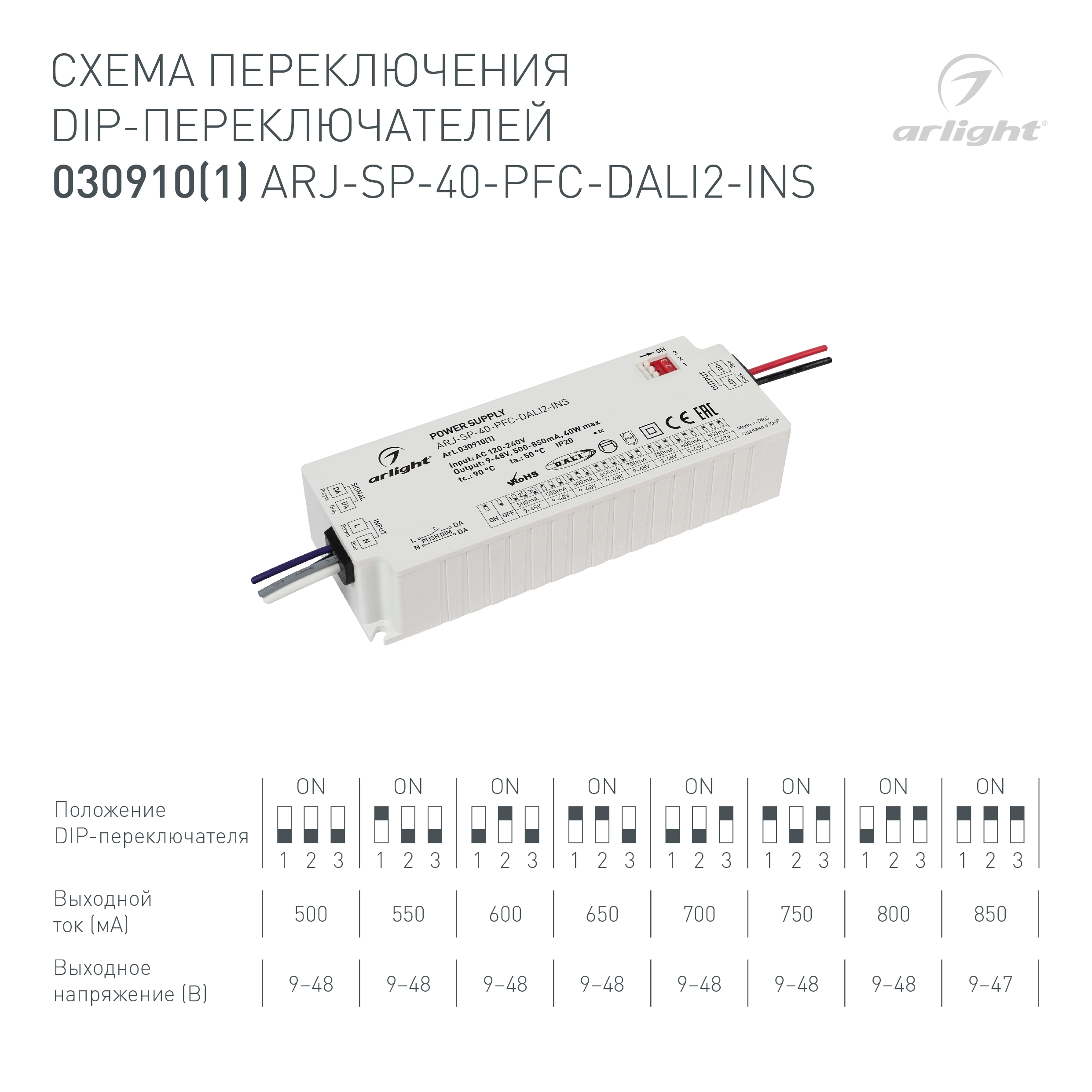 Диммируемый источник тока по протоколу DALI 2.0 (диапазон 0.1-100%) с гальванической развязкой для светильников и мощных светодиодов. Входное напряжение 100-240 VAC. Выходные параметры: 9-48В (500/550/600/650/700/750/800мА), 9-47В (850мA), максимальная мощность 40 Вт. Встроенный PFC >0.97. Негерметичный пластиковый корпус IP 20. Габаритные размеры длина 122 мм, ширина 44 мм, высота 27 мм. Гарантийный срок 3 года.