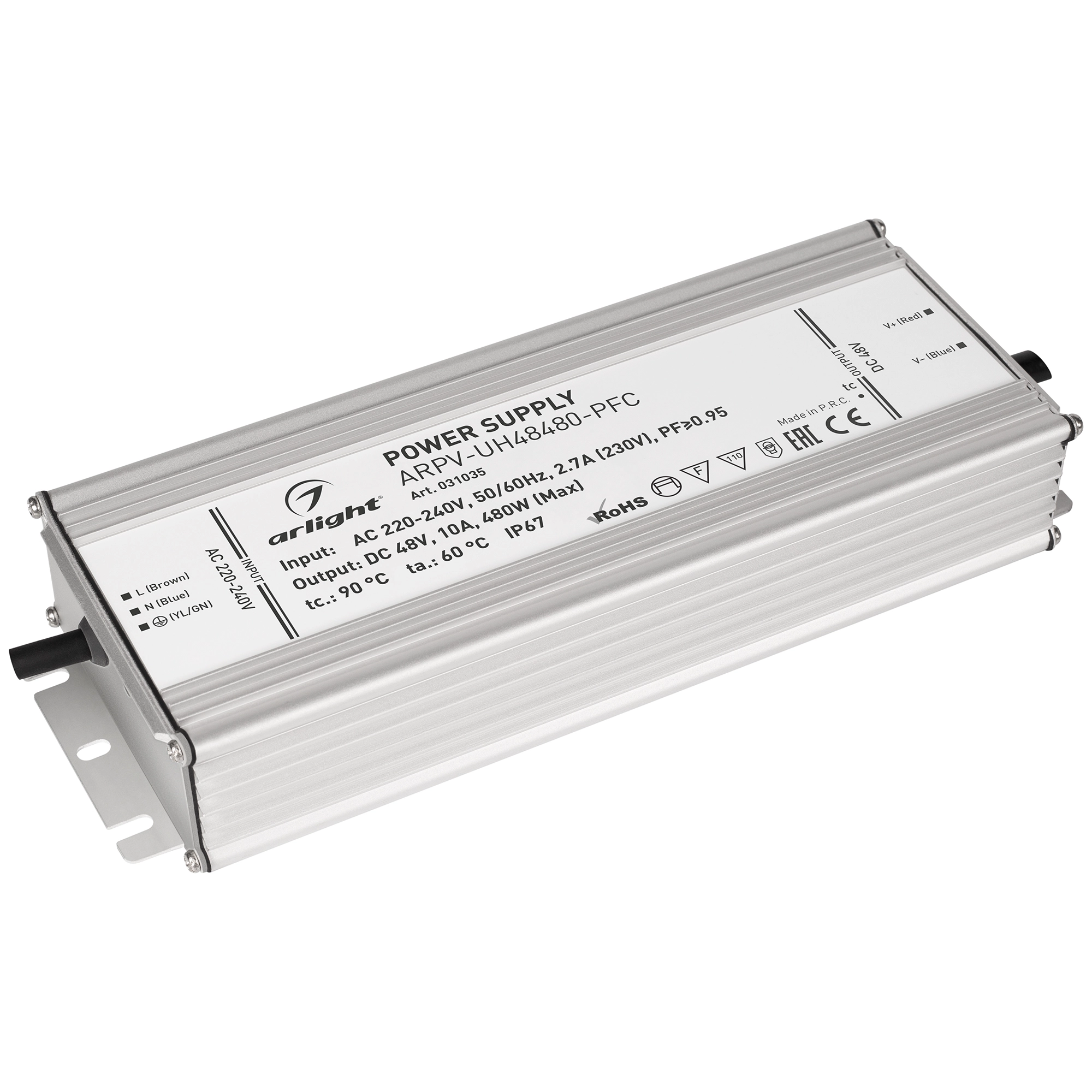 Источник напряжения с гальванической развязкой для светодиодных изделий. Входное напряжение 220-240 VAC. Выходные параметры: 48 В, 10 А, 480 Вт. Встроенный PFC >0,95. Герметичный алюминиевый корпус IP 67. Рабочая температура -40…+70C⁰. Габаритные размеры длина 251 мм, ширина 90 мм, высота 41.5 мм. Гарантийный срок 7 лет.