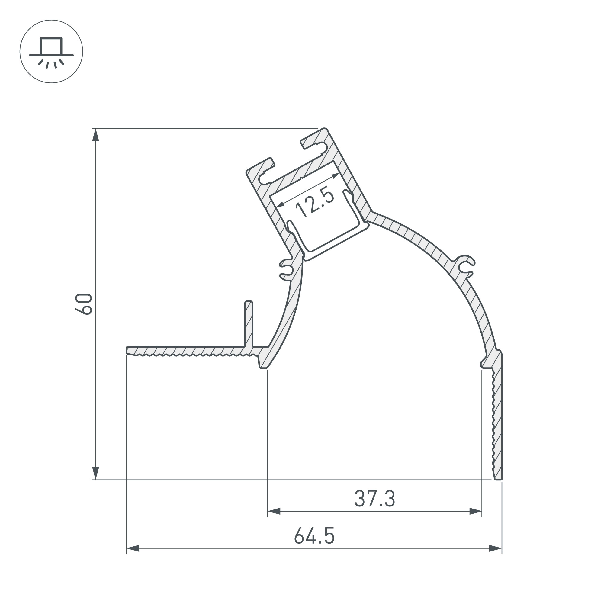 Алюминиевый профиль для светодиодных лент и линеек с боковым свечением. Цвет-белый RAL9003 (порошковая окраска). Габаритные размеры (L×W×H): 2000x64,5x60 мм. Ширина площадки для ленты 12,5 мм. Экраны, заглушки и другие аксессуары приобретаются отдельно. Цена за 1 метр.