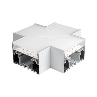 Крестовой угол в сборе, для соединения 4-х профилей S2-LINE-10570 под прямыми углами 90°. Экран образует линию "Х" на плоскости. В комплекте матовый экран, площадка для ленты, соединители. Размер 200х200 мм.