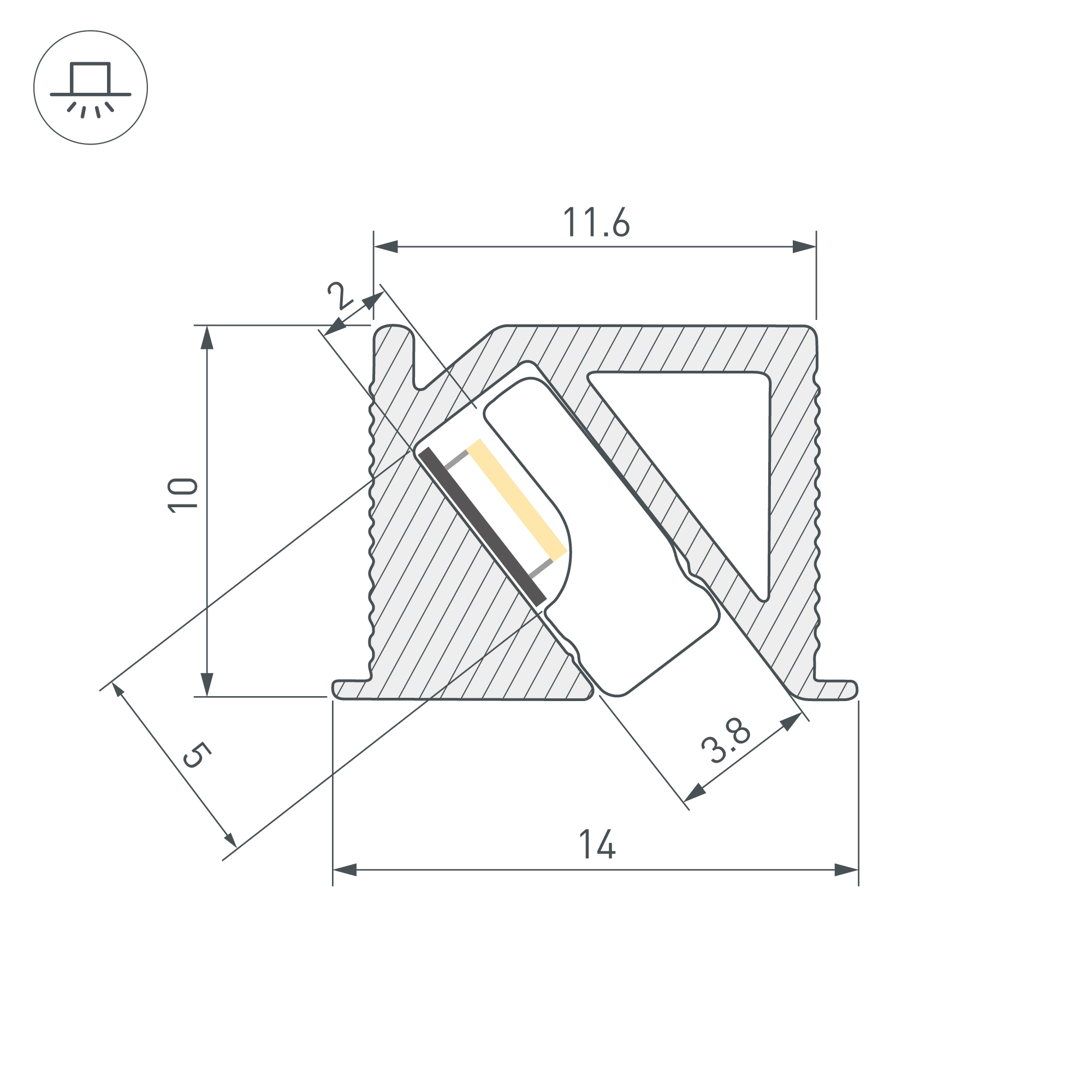 Алюминиевый анодированный профиль для светодиодных лент и линеек с боковым свечением. Цвет - серо-оливковый. Габаритные размеры (L×W×H): 2000x14x10 мм, паз для установки 11,6 мм. Ширина площадки для ленты 5 мм. Экраны и заглушки приобретаются отдельно. Цена за 1 метр.