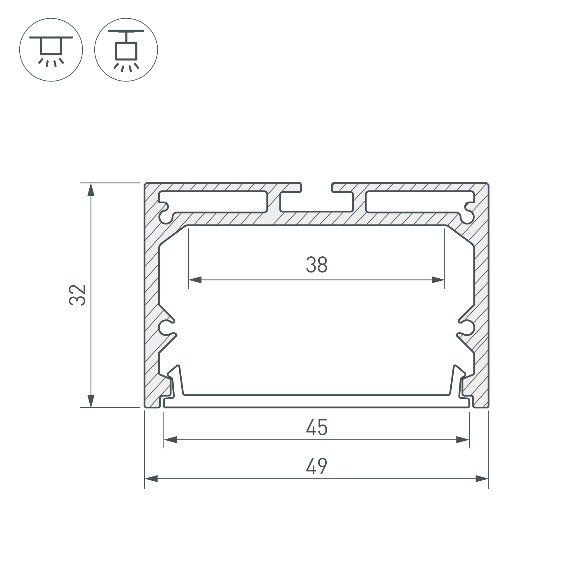 Комплект с экраном. Алюминиевый профиль для светодиодных лент и линеек. Цвет - белый RAL9003 (порошковая окраска). Габаритные размеры (L×W×H): 2500x49x32 мм. Ширина площадки для ленты 38 мм. Заглушки в комплекте (4 заглушки белого цвета, 16 шурупов). Аксессуары приобретаются отдельно. Цена за комплект.
