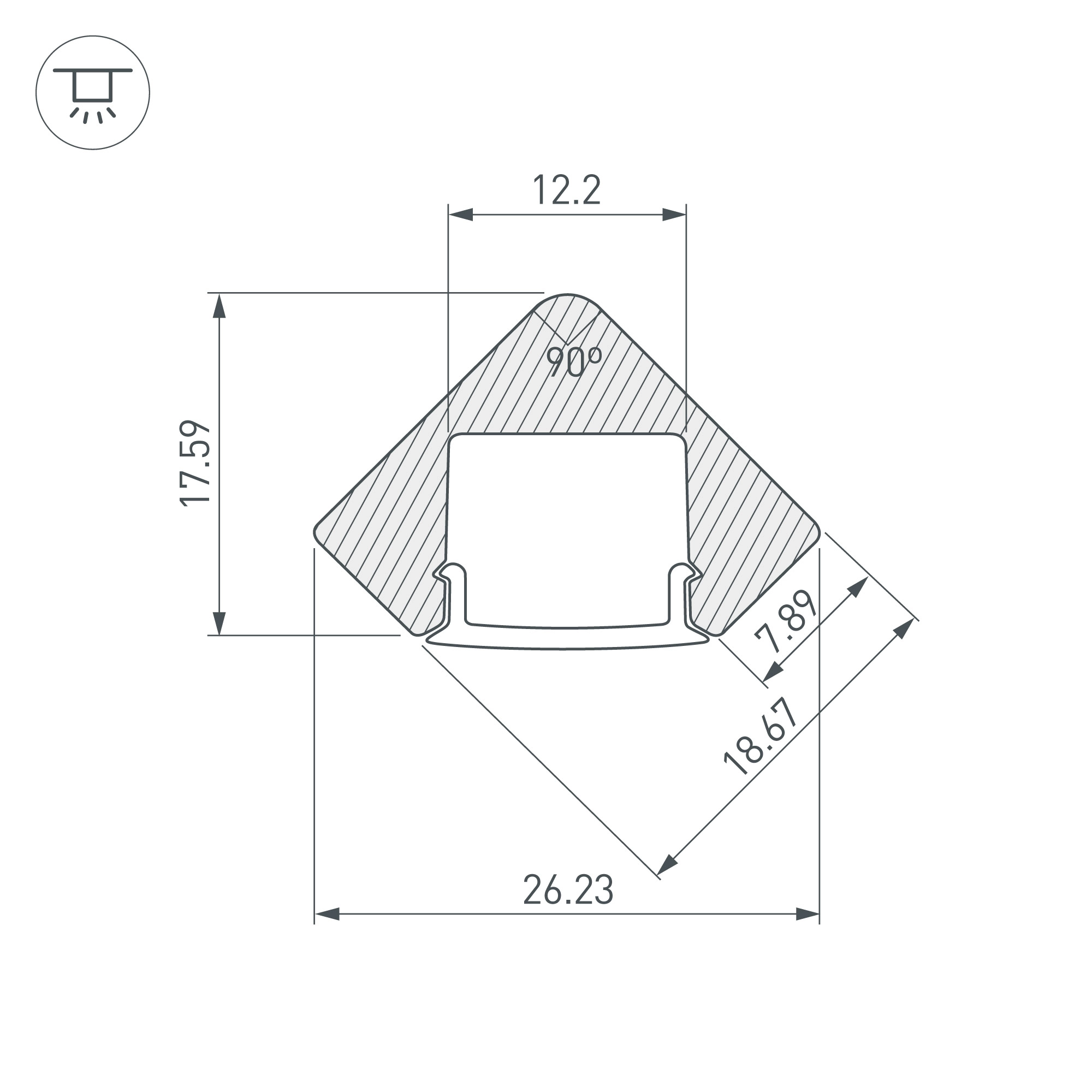 Поставка под заказ от 1 компл. Комплект с экраном. Алюминиевый анодированный угловой профиль для светодиодных лент и линеек. Габаритные размеры (L×W×H): 2000x26,23x17,59 мм. Ширина площадки для ленты 12,2 мм. Аксессуары приобретаются отдельно. Цена за комплект. Минимальный заказ 1 комплект.