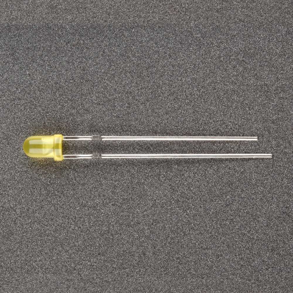 Поставка под заказ от 5000 шт. Выводной круглый светодиод, d=3 мм, диффузная желтая линза. Цвет свечения желтый (588 нм), мигающий. Угол излучения 45°. Сила света Iv=800-1000 мкд при If=20мА. VF=3-5 В. Частота мигания f =1.5 Гц.