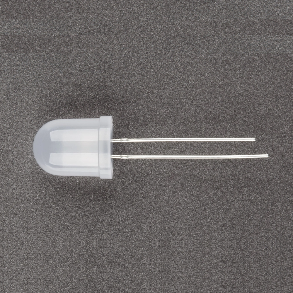 Поставка под заказ от 1000 шт. Выводной круглый светодиод, d=10 мм, белая матовая линза. Цвет свечения RGB: красный (625 нм), зеленый (525 нм), синий (470 нм), (7 комбинаций цветов), мигающий (быстрый). Угол излучения 45°. Сила света Iv=300-400 мкд при If=20 мА. VF=2.2-2.6 В (красный), VF=3.5-4 В (зеленый/синий).