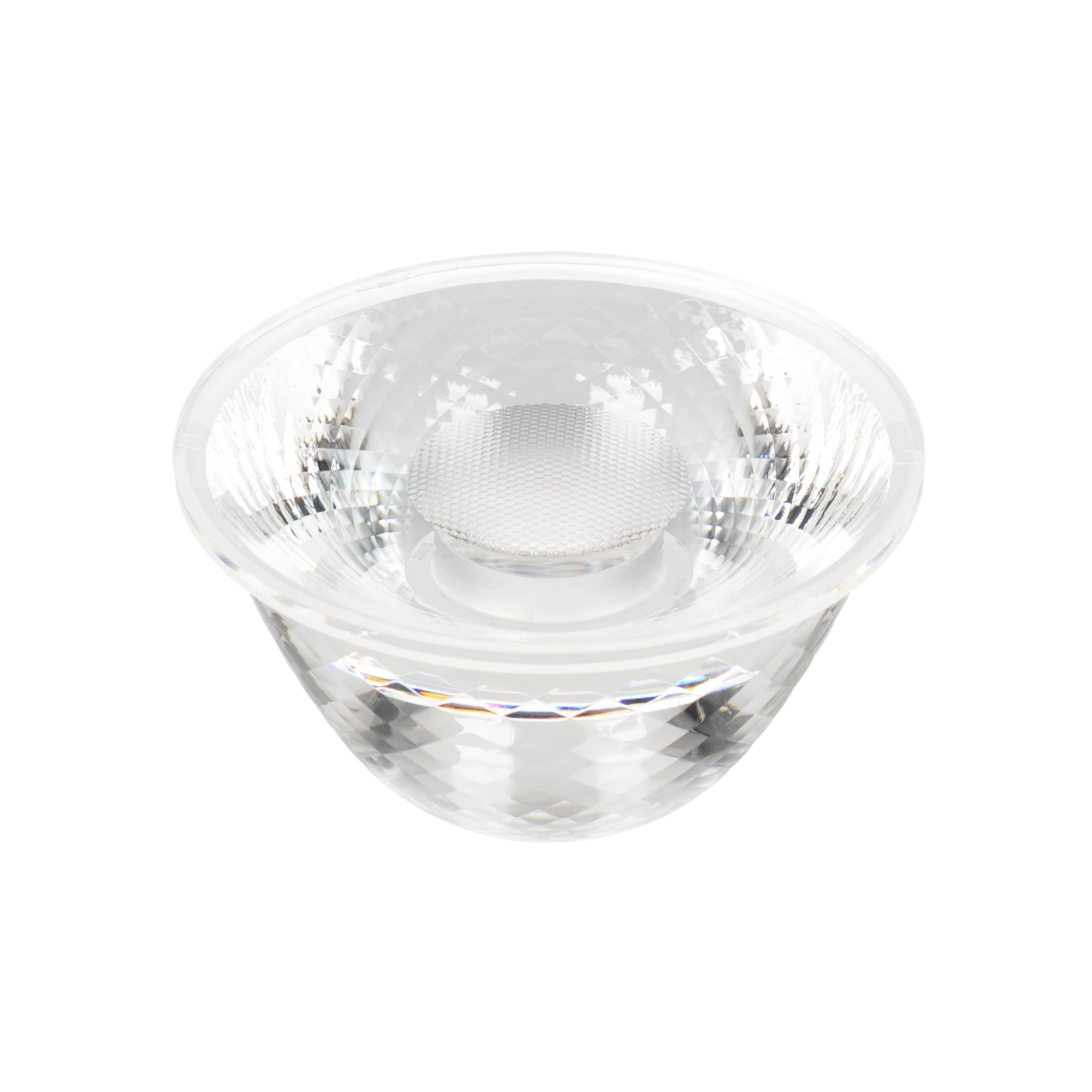 Одиночная линза цельная (с несъемным холдером) для мощного светодиода COB. Совместима со светильниками LGD-GERA-2TR-R90-30W/LGD-GERA-4TR-R90-30W. Угол обзора вертикальный 36°, прозрачная микропризма. Материал PMMA. Диаметр 75 мм, высота 37 мм.