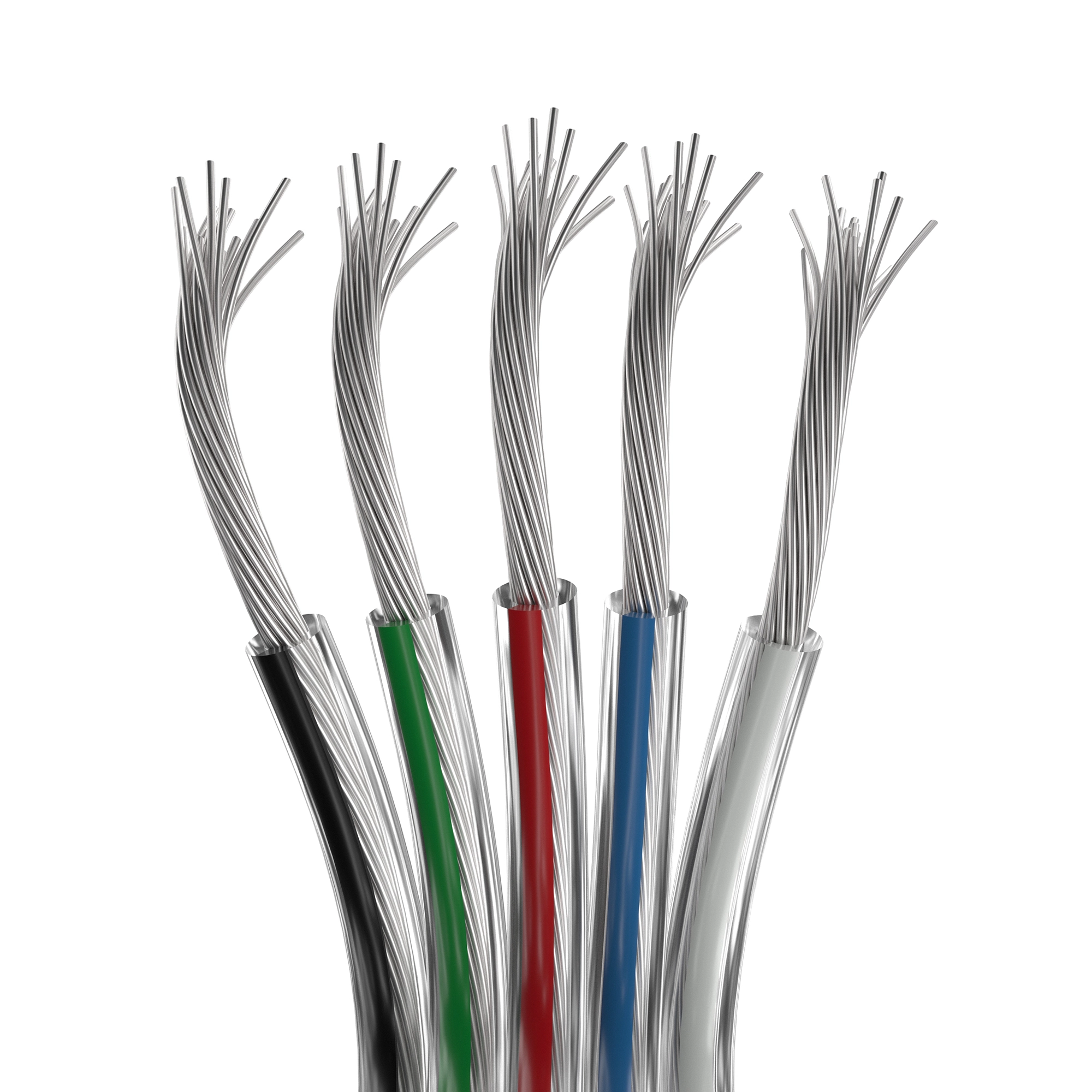 Шлейф для питания и управления RGBW светодиодными лентами. 5 проводников, калибр проводника 20AWG, сечение проводника 0.52 мм², проводник из луженой меди, внешняя оболочка из прозрачного ПВХ. Длина кабеля в бухте — 50 метров.