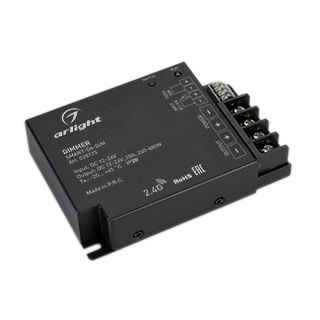 Диммер для монохромной светодиодной ленты (ШИМ). Входной сигнал: RF 2.4G, 0/1-10V, PUSH DIM. Питание/рабочее напряжение 12-24VDC, максимальный ток 20A на канал, 1 канал, максимальная мощность 240-480W. Винтовые клеммы, корпус - металл. Габариты 107x75x25 мм. Управляется пультами и панелями серии SMART (поставляются отдельно).