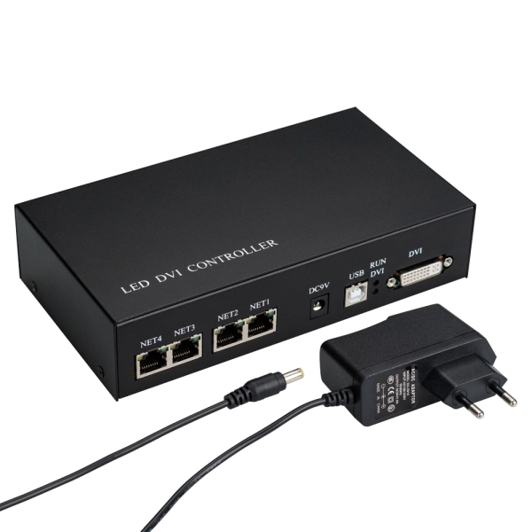 Master-контроллер для синхронизации до 1020 контроллеров HX-801RA, HX-801RC, HX-802RA, 4 выходных Ethernet-порта до 400 000 пикселей, без прямого выхода на ленты и модули. Поддерживает DVI/HDMI интерфейсы. Онлайн управление с ПК запись программ ПО LED Studio. Напряжение 230В. В комплект входит адаптер питания 9VDC, HDMI/DVI кабель 1.5м, USB 2.0 кабель 1.5м. Размер 189x104x44 мм.
