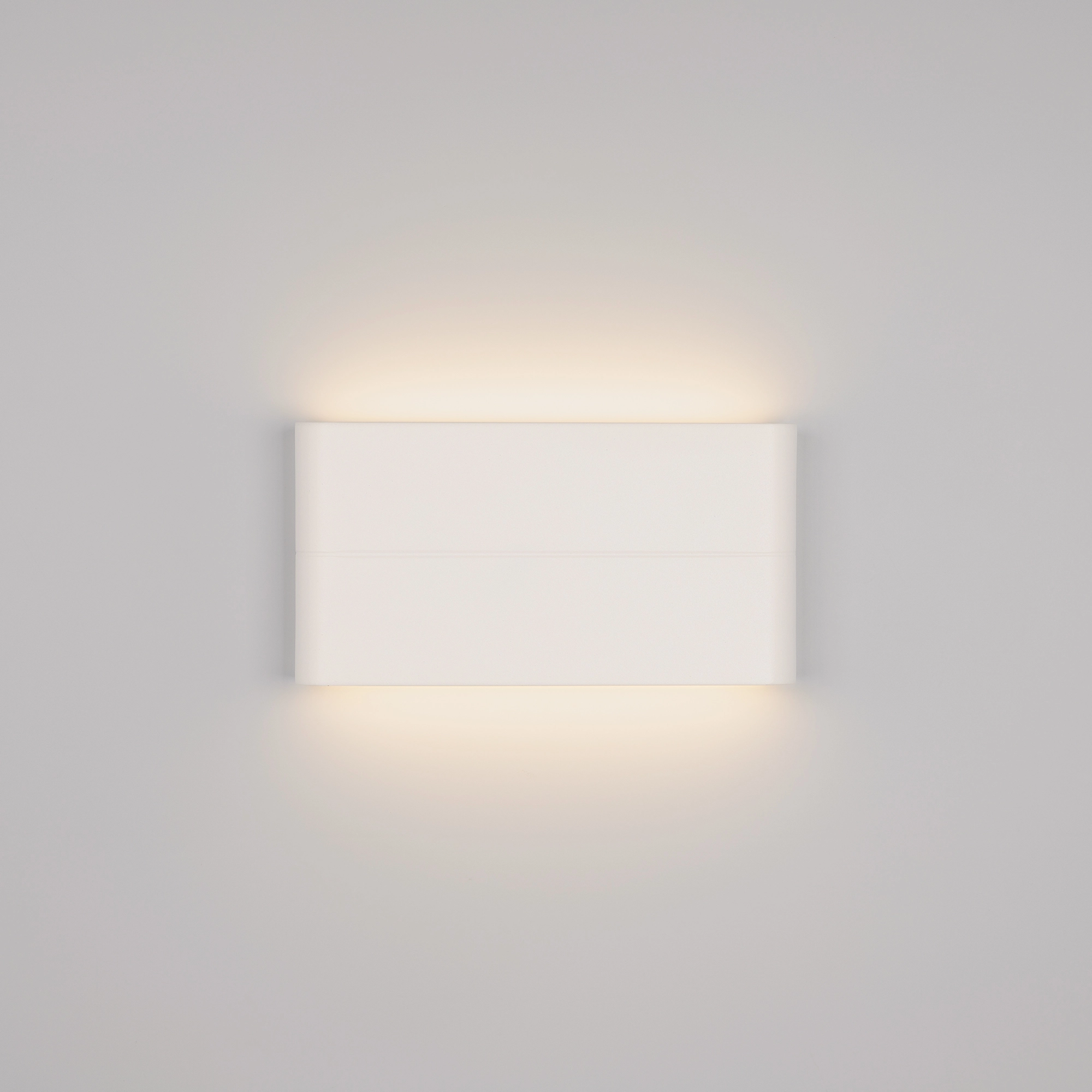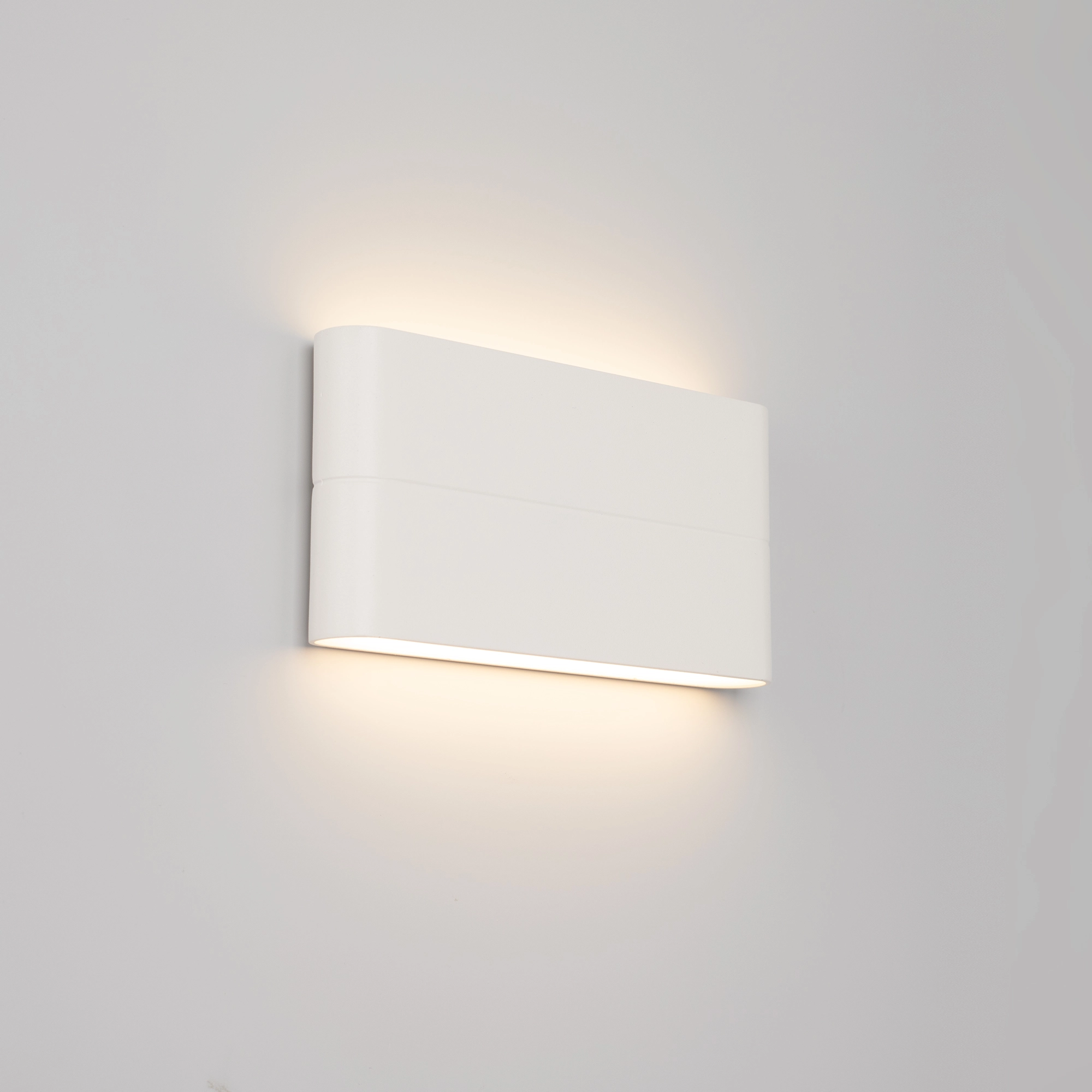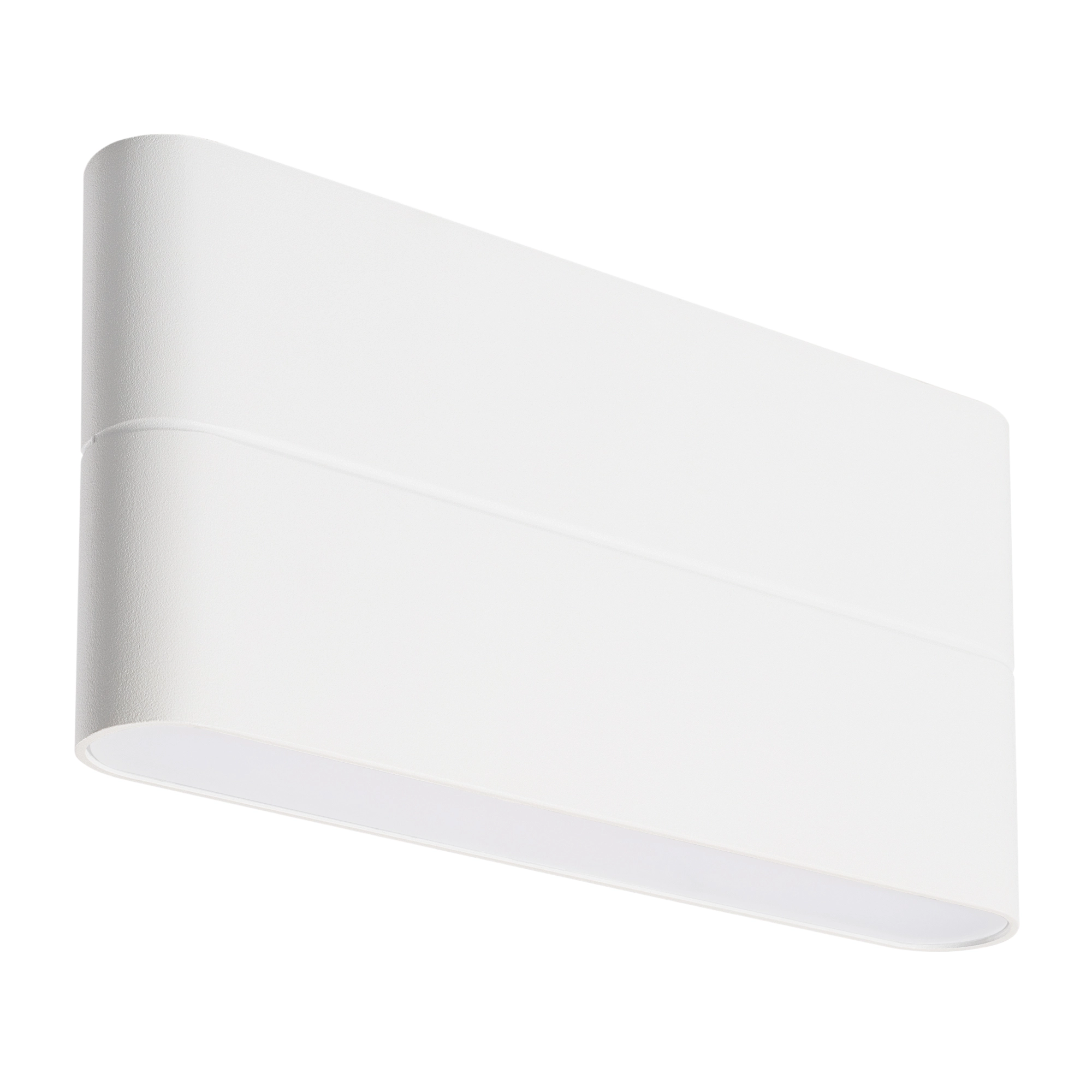 Накладной настенный светильник 2x6Вт, белый алюминиевый корпус, матовый рассеиватель из поликарбоната. Цвет ТЕПЛЫЙ БЕЛЫЙ 3000K, св.поток 950лм, CRI(Ra)>80, угол 120°, свет вверх-вниз. Размер 170x90x28мм. IP54. Питание AC220-240V, 12Вт, встроенный драйвер.