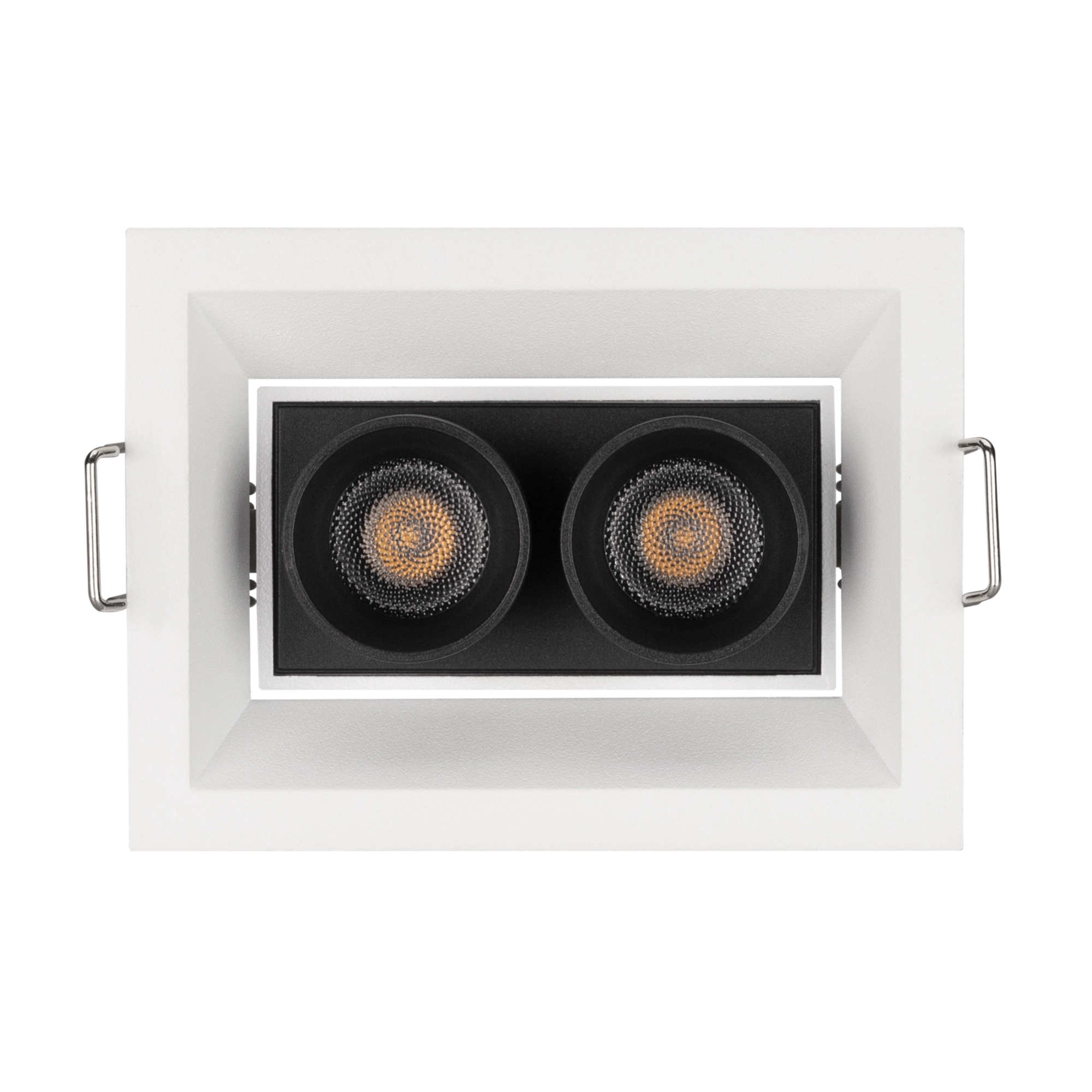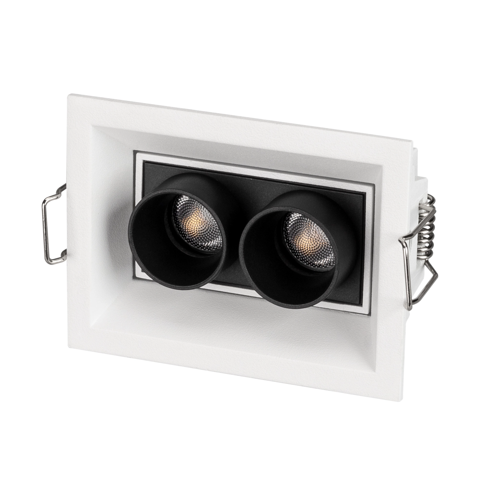 Встраиваемый поворотный светильник. Мощность 5 Вт, св. поток 375 лм, 75 лм/Вт, теплый 3000 K, CRI>98, угол 30°, напряжение питания 230 В. Белый прямоугольный корпус из алюминия, экран PMMA, степень защиты IP20. Размер: длина 90 мм, ширина 67 мм, высота 50 мм. Монтаж встраиваемый, установочное отверстие длина 85 мм, ширина 60 мм. Драйвер 3-9 В, 700 мА, пульсация <1%.