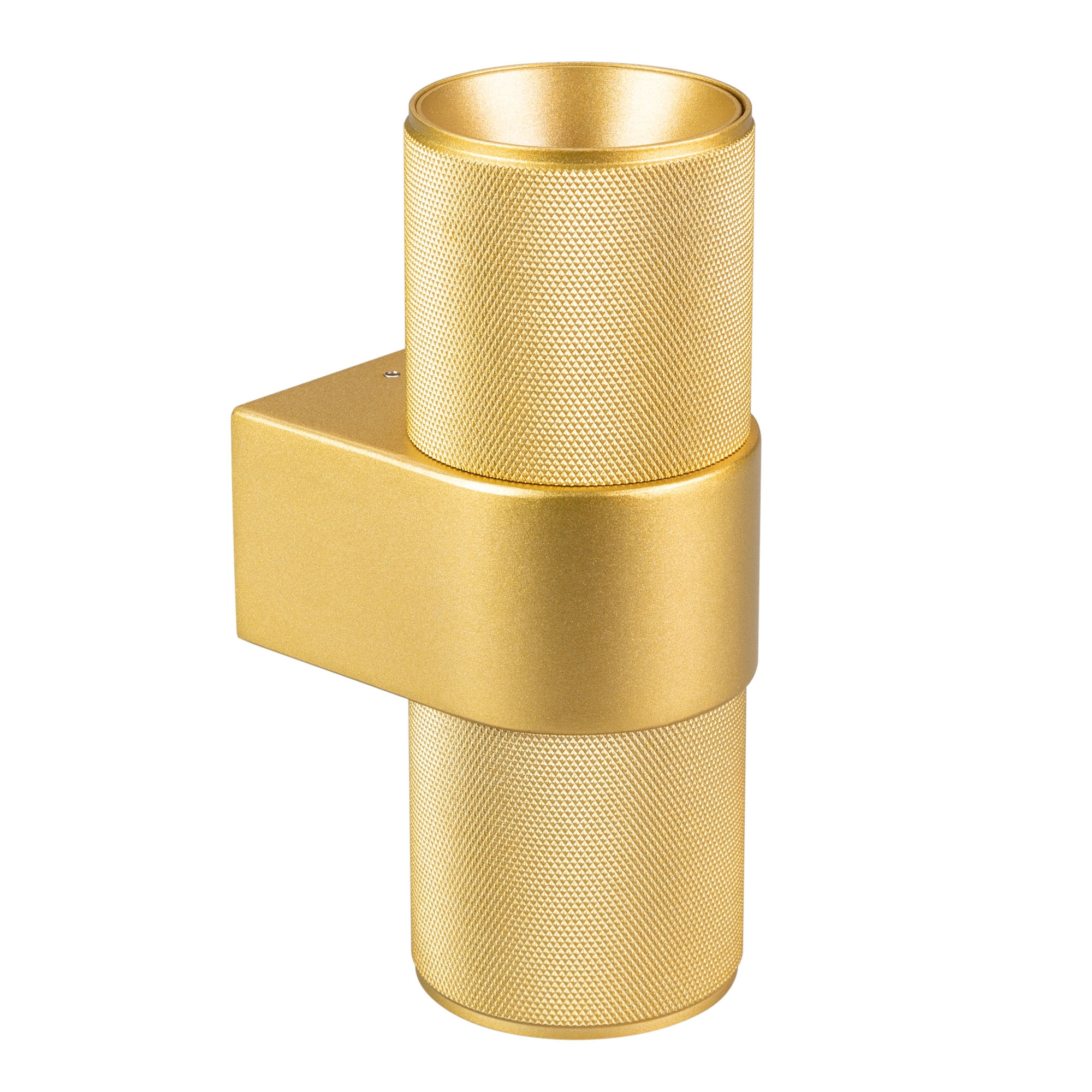Настенный светильник со свечением в верхнюю и нижнюю полусферу. Мощность 6x2 Вт, св. поток 990 лм, 70 лм/Вт, дневной 4000 K, CRI>90, угол 40°, напряжение питания 230 В. Золотистый фигурный корпус из алюминия, степень защиты IP20. Размер: длина 110 мм, ширина 72 мм, высота 180 мм. Монтаж накладной. Драйвер 27-42 В, 300 мА, пульсация <1%.