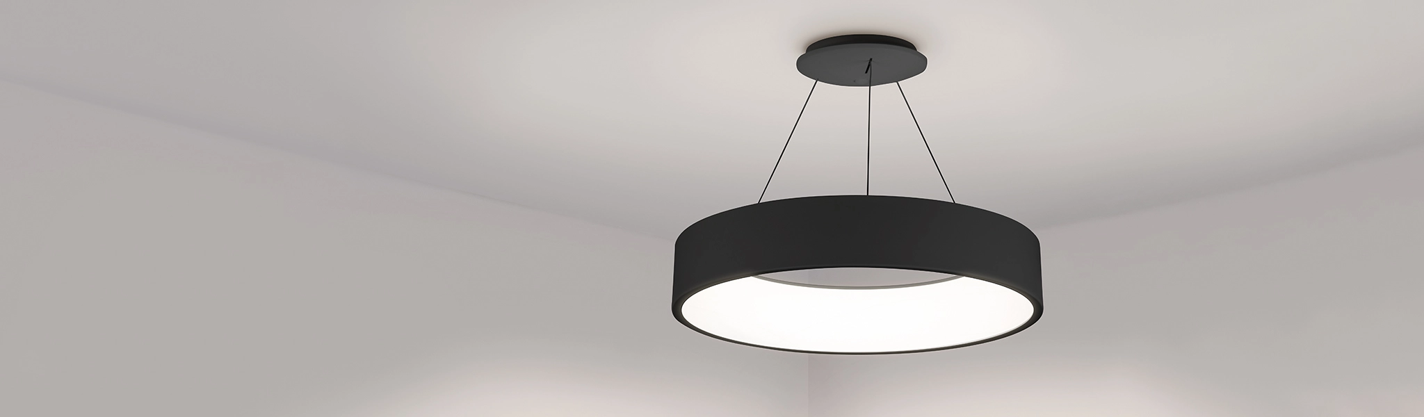 Подвесной светильник 33Вт, черный круглый корпус. Цвет ДНЕВНОЙ БЕЛЫЙ 4000K, св.поток 1900 лм, CRI(Ra)>80, угол 120°. Размер светильника Ф455x110мм. Максимальная длина подвеса 1200мм. Питание AC220-240V, 33Вт, драйвер встроенный (30-42V, 750mA).