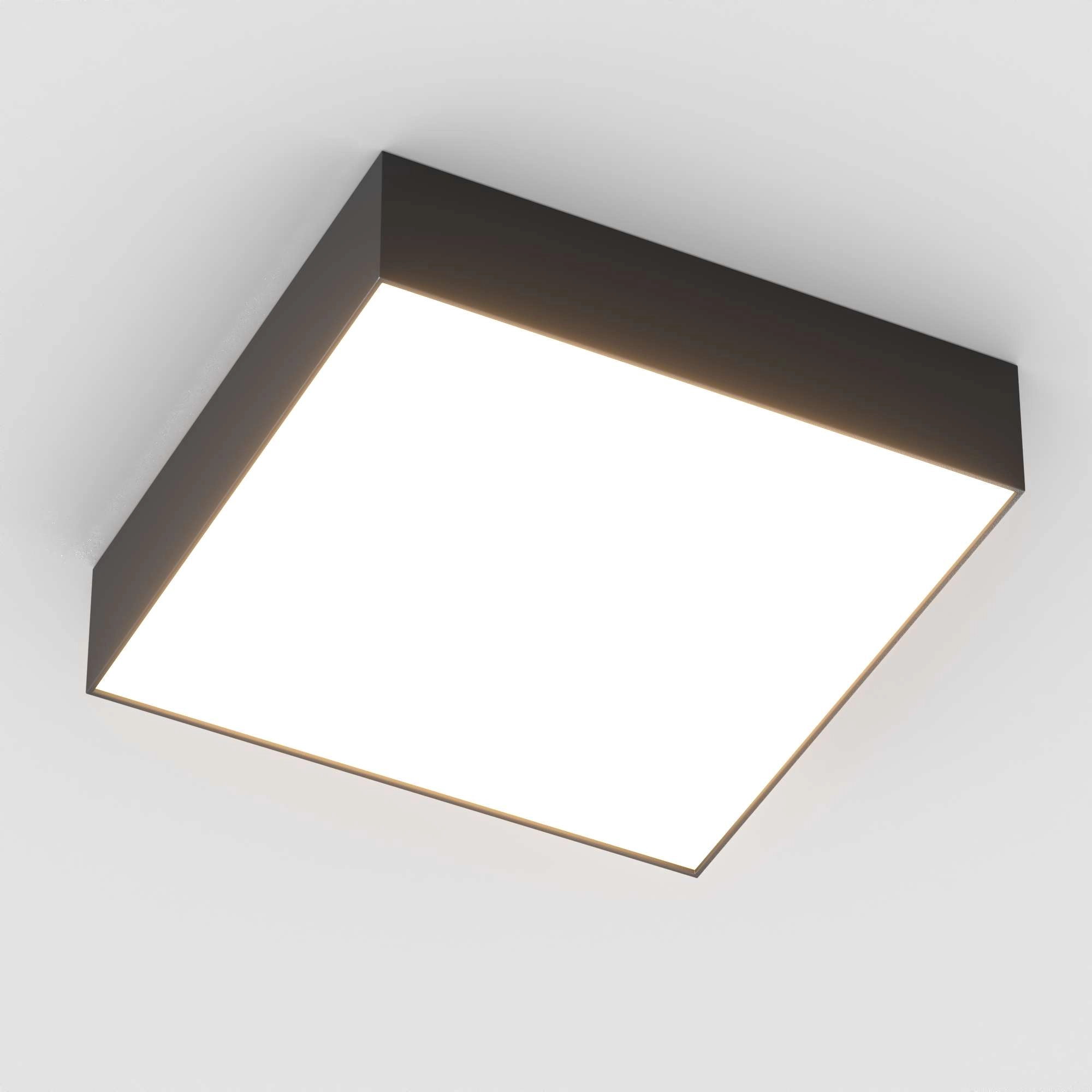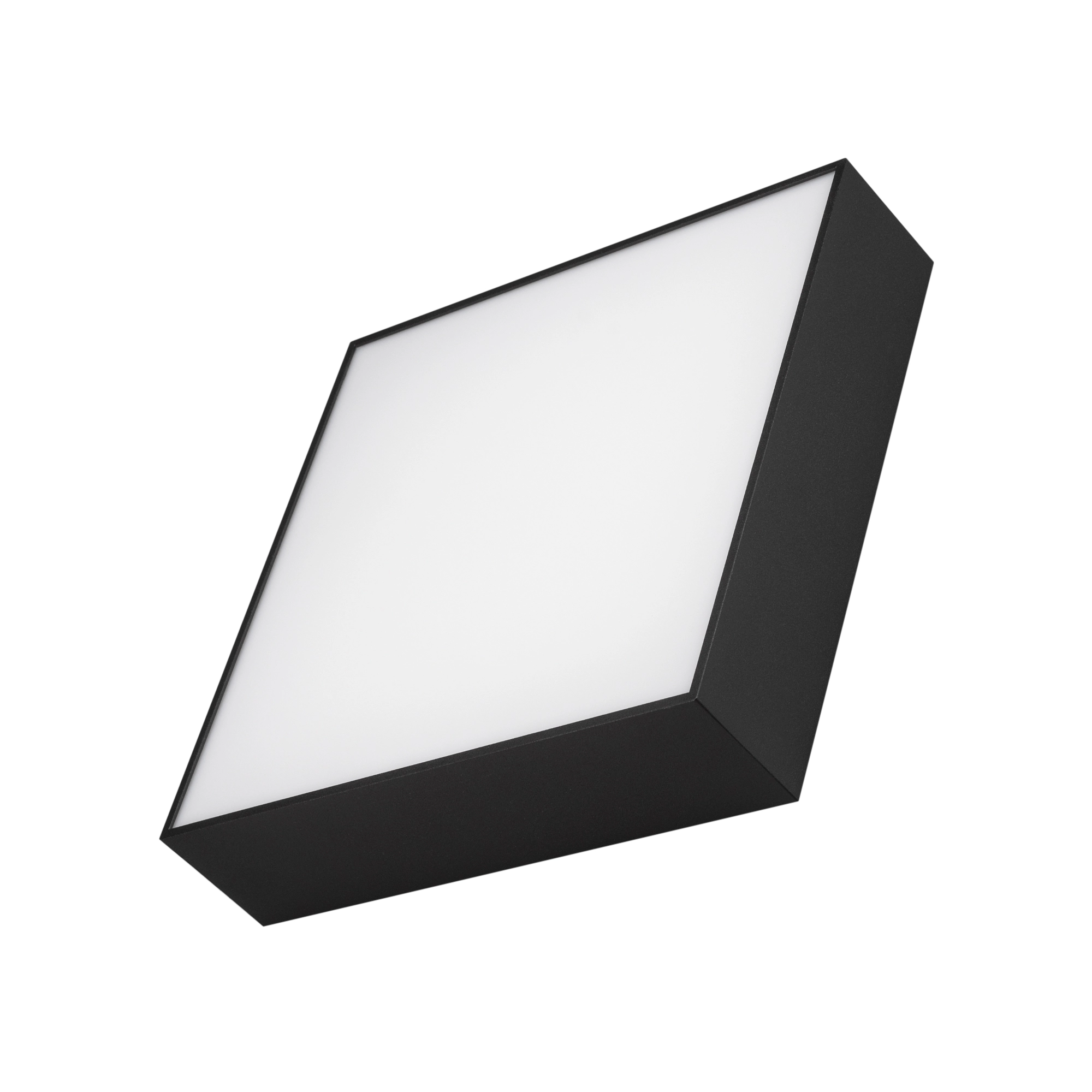 Накладной светильник. Мощность 25 Вт, св. поток 1440-1900 лм, 76 лм/Вт, дневной 4000 K, CRI>90, угол 120°, напряжение питания 230 В. Черный квадратный корпус из алюминия, экран PC, степень защиты IP40. Размер: длина 250 мм, ширина 250 мм, высота 59 мм. Монтаж накладной. Драйвер 27-45 В, 600 мА, пульсация <5%.