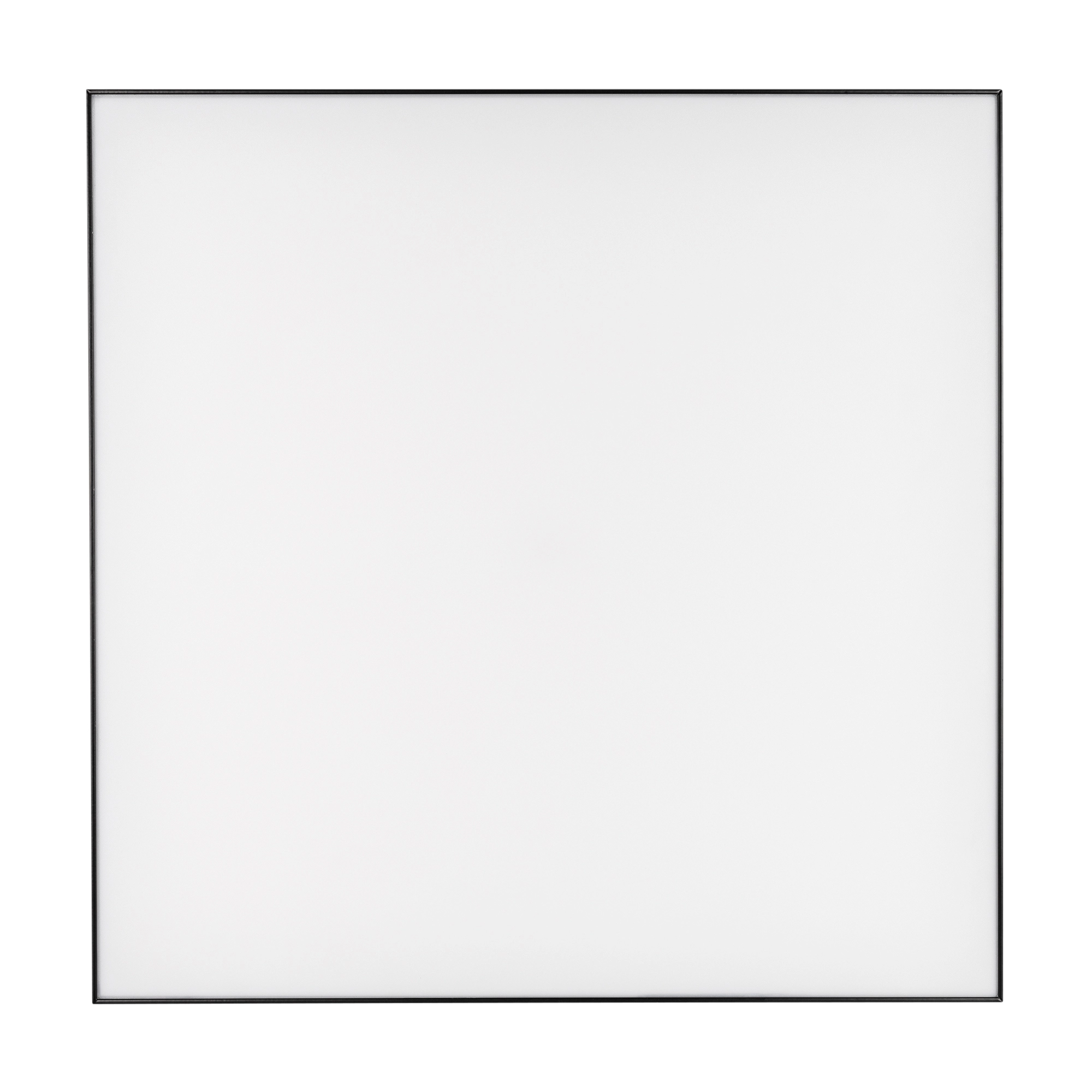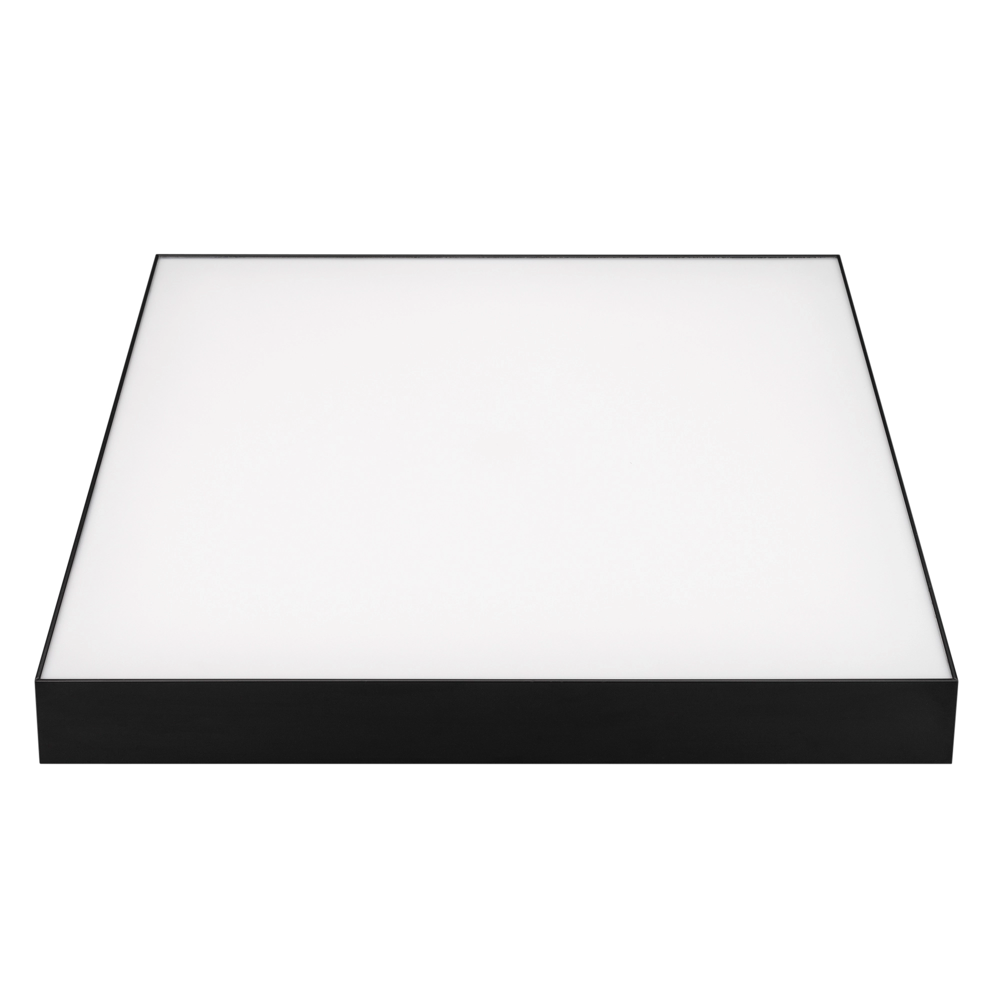 Накладной светильник. Мощность 50 Вт, св. поток 4100-4400 лм, 80-90 лм/Вт, дневной 4000 K, CRI>90, угол 120°, напряжение питания 230 В. Черный квадратный корпус из алюминия, экран PC, степень защиты IP40. Размер: длина 500 мм, ширина 500 мм, высота 64 мм. Монтаж накладной. Драйвер 27-42 В, 1200 мА, пульсация <5%.