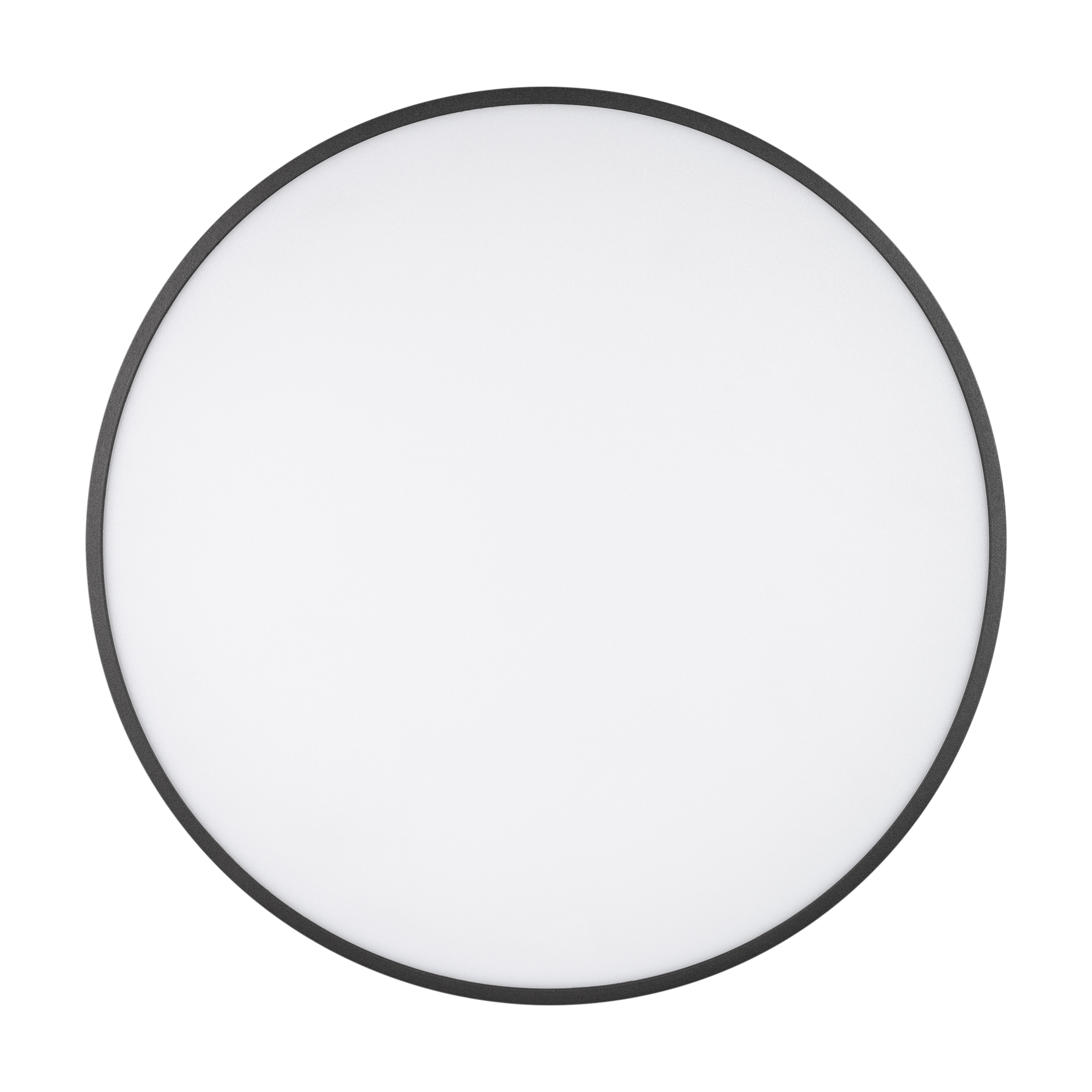 Накладной светильник. Мощность 30 Вт, св. поток 2200 лм, 75 лм/Вт, теплый 3000 K, CRI>90, угол 120°, напряжение питания 230 В. Черный круглый корпус из алюминия, экран PC, степень защиты IP40. Размер: диаметр 350 мм, высота 64 мм. Монтаж накладной. Драйвер 27-42 В, 800 мА, пульсация <5%.