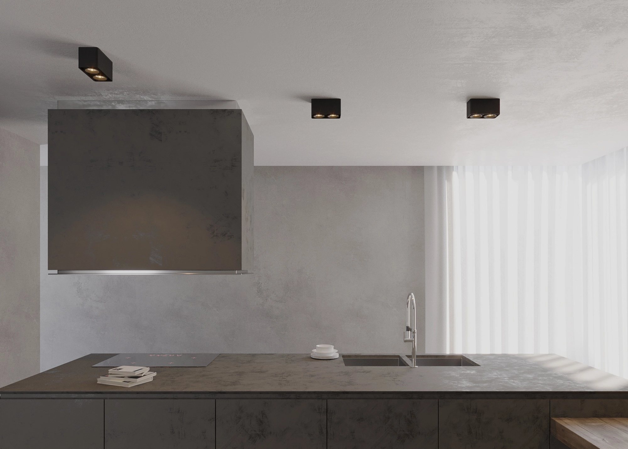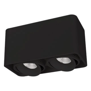 Накладной интерьерный светильник. Мощность 16 Вт, св. поток 1490 лм, 93 лм/Вт, дневной 4000 K, CRI>90, угол 45°, регулируемое направление луча 30°, напряжение питания 230 В. Черный квадратный корпус из алюминия, степень защиты IP20. Размер: длина 195 мм, ширина 100 мм, высота 100 мм. Монтаж накладной. Драйвер 26-40 В, 400 мА, пульсация <5%.