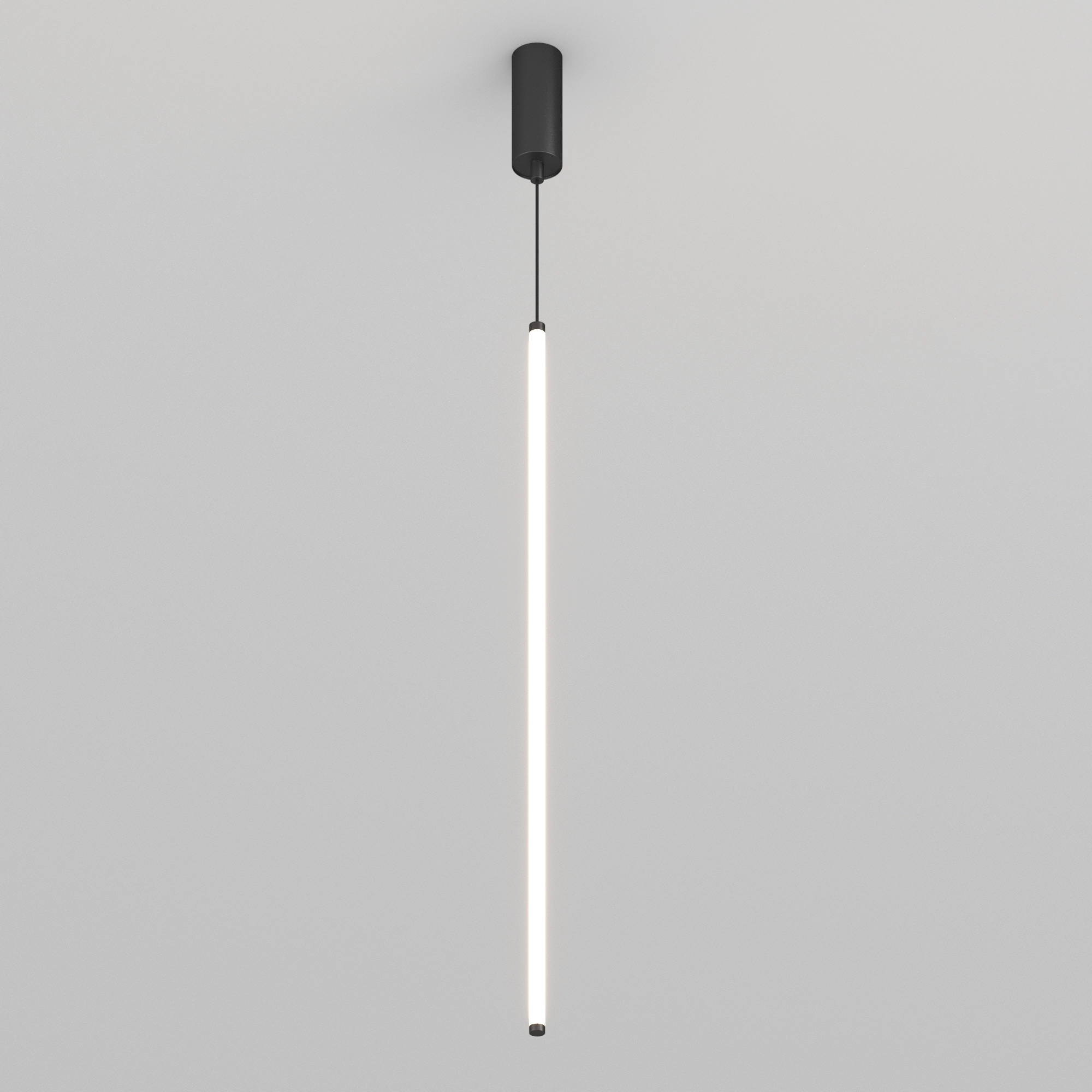 Подвесной светильник. Мощность 10 Вт, св. поток 400 лм, 40 лм/Вт, дневной 4000 K, CRI>85, угол 360°, напряжение питания 230 В. Черный круглый корпус из алюминия, рассеиватель акрил, степень защиты IP20. Размер: диаметр 18 мм, длина 816 мм, размер чаши: диаметр 60 мм, высота 125 мм. Монтаж подвесной, длина подвеса 1500 мм. Драйвер DC 24 В, 500 мА.