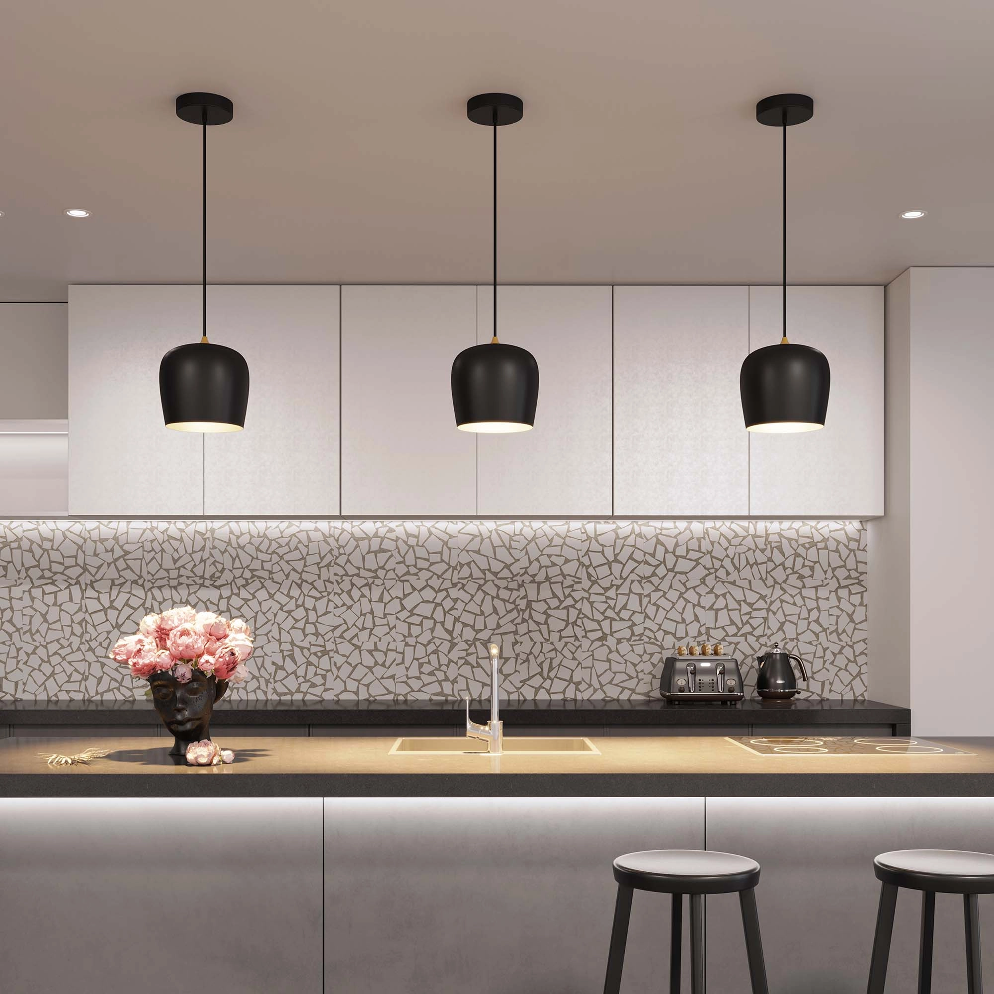 Подвесной светильник. Мощность 15 Вт, св. поток 730 лм, 50 лм/Вт, теплый 3000 K, CRI>90, угол 65°, напряжение питания 230 В. Белый круглый корпус из алюминия, степень защиты IP20. Размер: диаметр 250 мм, высота 250 мм, размер чаши: диаметр 160 мм, высота 35 мм. Монтаж подвесной, длина подвеса 1500мм. Драйвер 36-60 В, 350 мА, пульсация <5%.