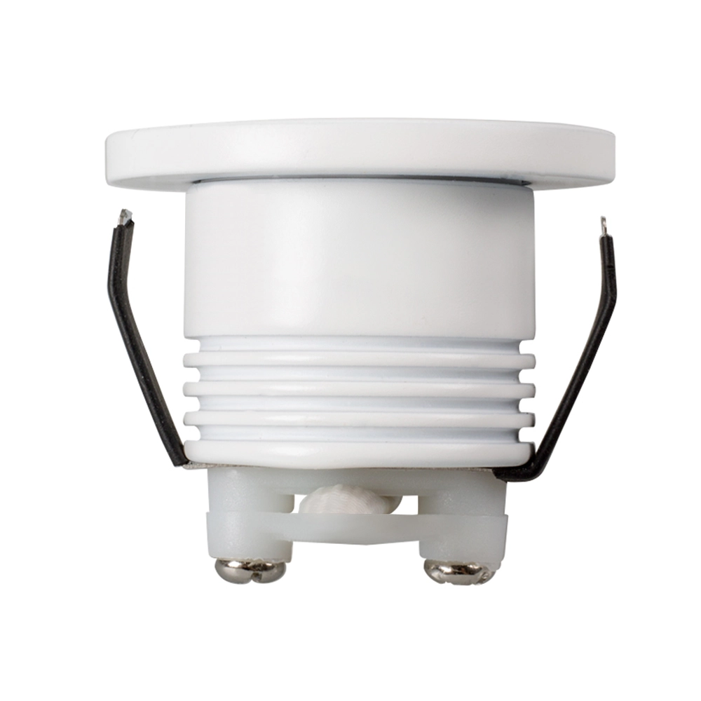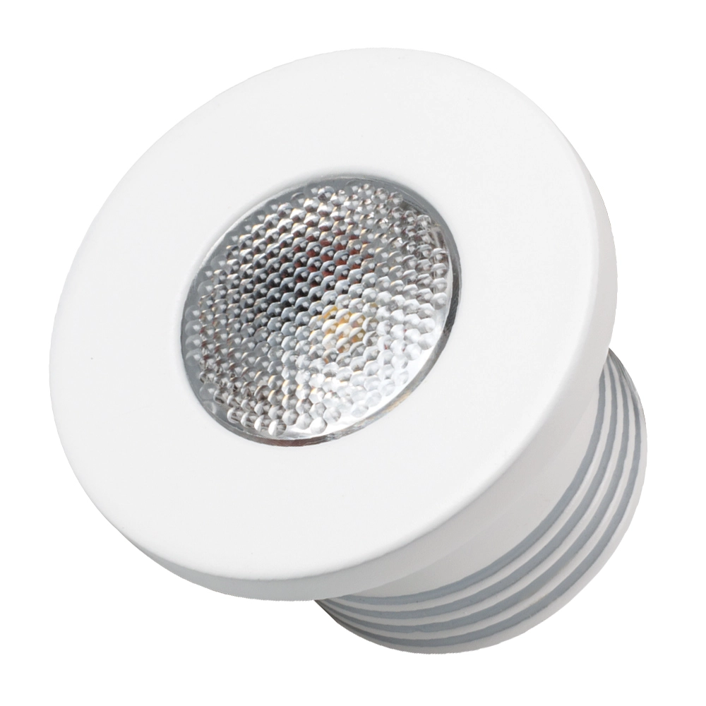 Врезной круглый мебельный светильник 1Вт, корпус белый алюминий. Цвет ТЕПЛЫЙ БЕЛЫЙ 3000K. Светодиод 1х1W OSRAM. CRI>80, Св.поток 80-90лм, угол 30°. Питание 180-240VAC, 1Вт, 150mA 6-7V, драйвер в комплекте. Размеры d35x34 мм, врезное отверстие d30 мм. Размер драйвера: 36x18x17 мм.