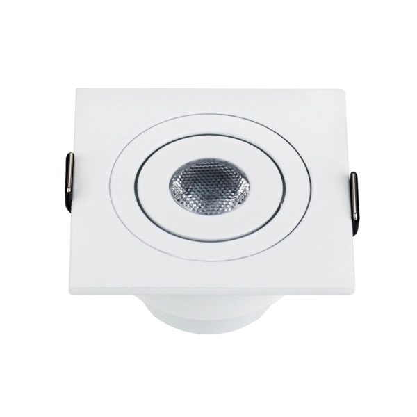 Поставка под заказ от 500 шт. Врезной квадратный мебельный светильник 3Вт, корпус белый алюминий. Цвет БЕЛЫЙ 5500K-6000K. Светодиод 1х3W CREE XPE. Св.поток 140-160лм, наклоняемая ось, угол 30°. Питание 110-240VAC, 3Вт, 700mA 3-5V, драйвер в комплекте. Размеры 60x60x43 мм, врезное отверстие d50 мм.