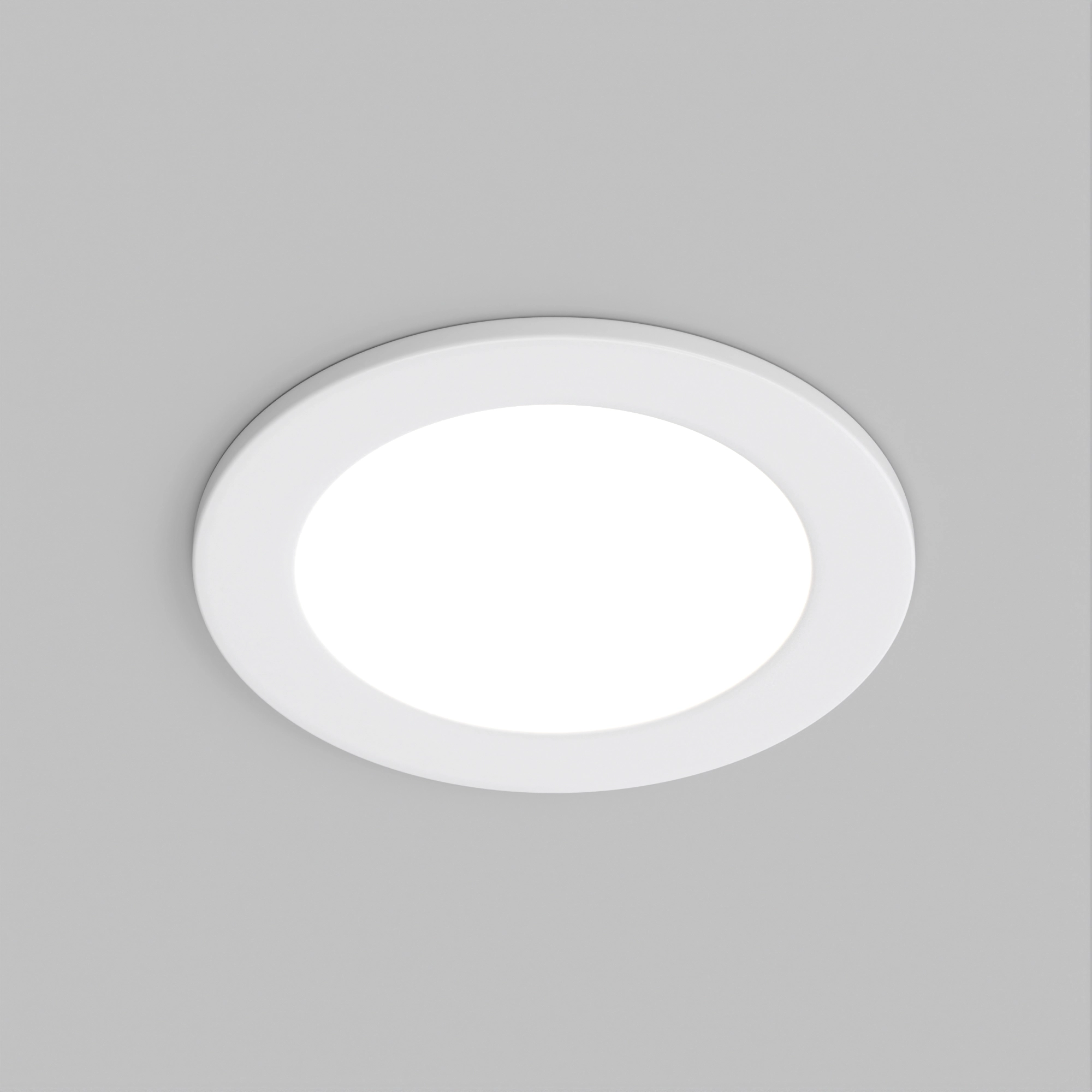 Светодиодная панель 5Вт, корпус IP40 белый, круглый. Цвет ДНЕВНОЙ БЕЛЫЙ 4000K, св.поток 350-400лм, CRI(Ra)>80, угол 100°. Размер Ф90x22 мм, установка в отверстие 75 мм. Питание AC 230V, 5Вт, DC300mA 15...18V, драйвер в комплекте.