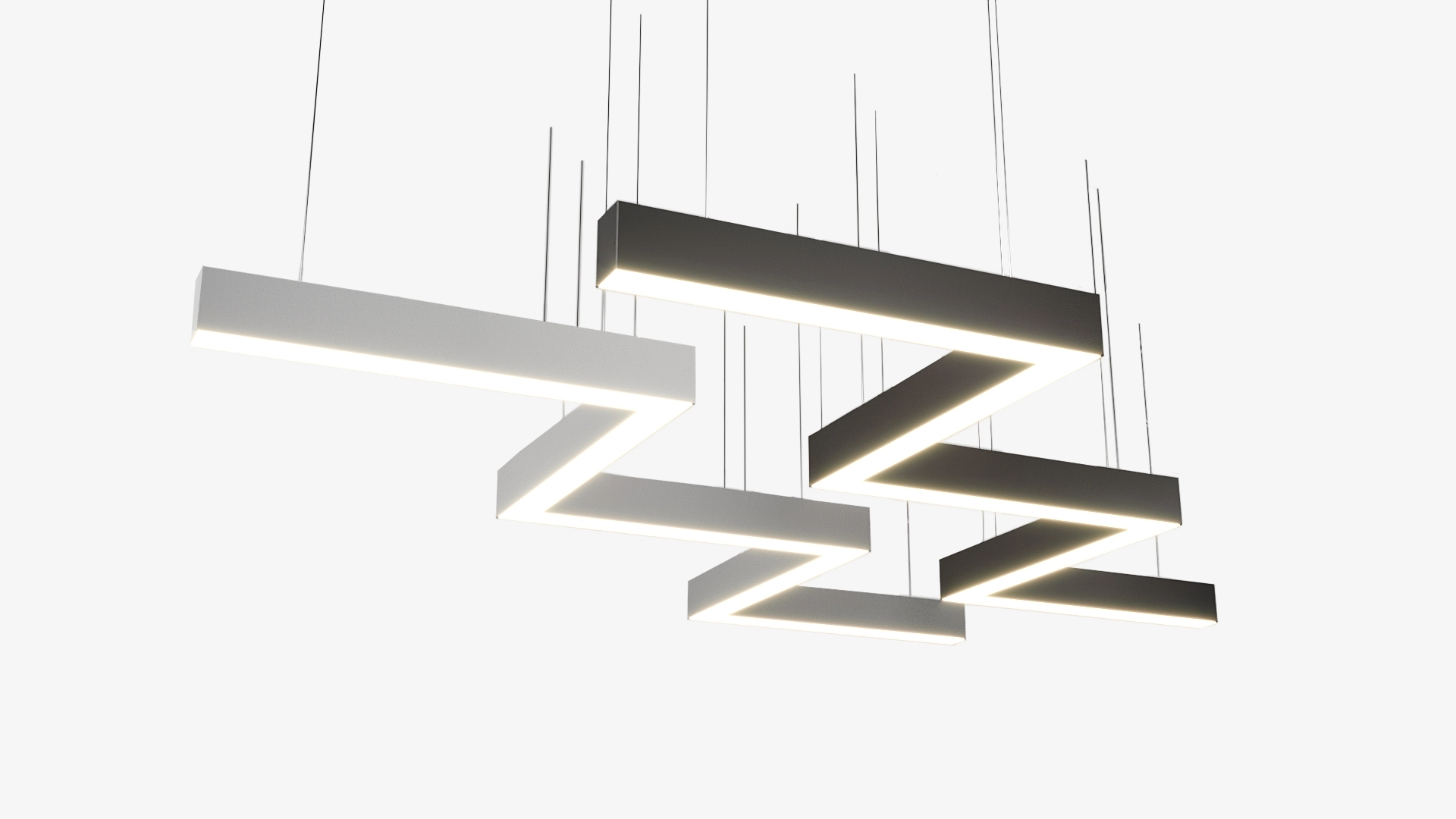 Дизайнерский Светильник светодиодный зигзаг SILED SNAKE-02-PROF 2550х570х50х70 (96 Вт, Черный, Подвесной) с равномерным свечением, производится с различными вариантами мощности и в различных размерах. Светильники создаются с требуемыми параметрами (по ТЗ Заказчика) и с различными модификациями цветовой температуры: теплым, нейтральным  или холодным светом свечения (3000К/4000К/5000К). Возможны опции диммирования, степень защиты IP40 или IP54, блок аварийного питания (БАП 1-3 часа), изменение цветовой температуры с теплого на холодный. Подвесной или накладной монтаж. Светильник создает уникальные световые пространства и отлично подходит для дизайнерского освещения квартир,  торгово-развлекательных центров, офисов, детских клубов, ресторанов, кафе, автосалонов, фитнес залов. Базовые цвета корпуса: Белый / Черный. Так же возможен выбор любого цвета по RAL / ORACAL.