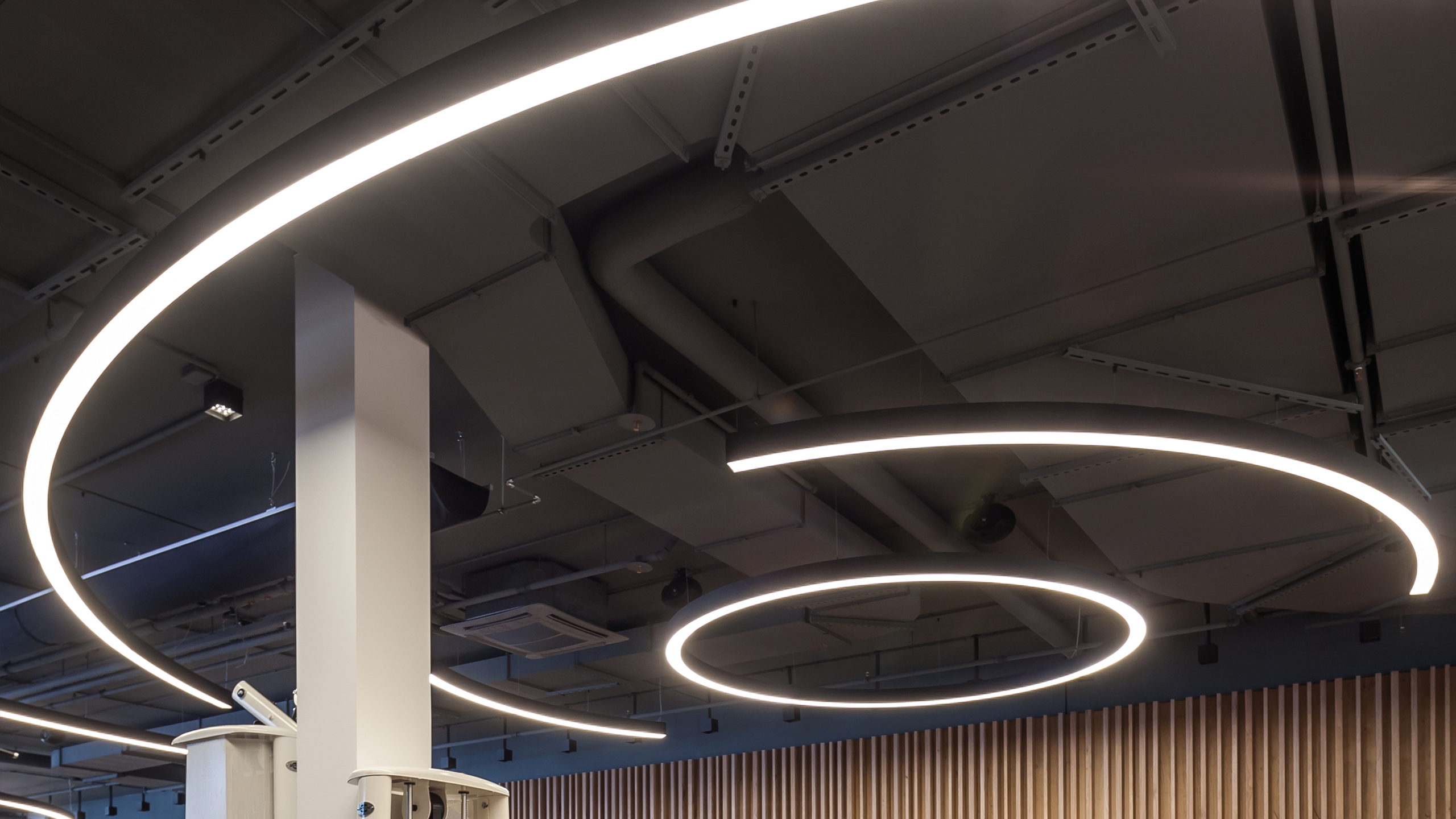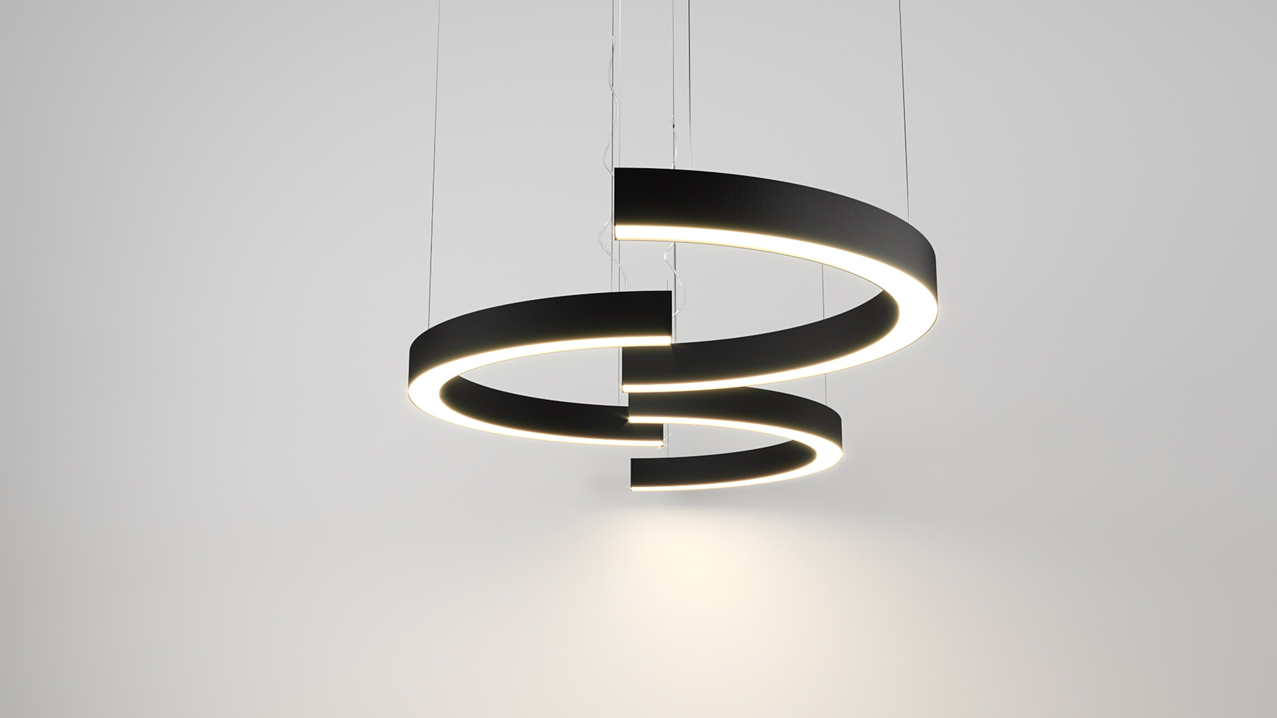 Дизайнерский Светильник светодиодный полукольцо SILED NIMBUS-HALF 900х450х100х60 (32 Вт, Черный, Подвесной) с равномерным свечением, производится с различными вариантами мощности и в различных размерах. Светильники создаются с требуемыми параметрами (по ТЗ Заказчика) и с различными модификациями цветовой температуры: теплым, нейтральным  или холодным светом свечения (3000К/4000К/5000К). Возможны опции диммирования, степень защиты IP40 или IP54, блок аварийного питания (БАП 1-3 часа), изменение цветовой температуры с теплого на холодный. Подвесной или накладной монтаж. Светильник создает уникальные световые пространства и отлично подходит для дизайнерского освещения квартир,  торгово-развлекательных центров, офисов, детских клубов, ресторанов, кафе, автосалонов, фитнес залов. Базовые цвета корпуса: Белый / Черный. Так же возможен выбор любого цвета по RAL / ORACAL.