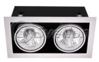 Современный встраиваемый плоско-поворотный светильник серии "Карданы". Предназначен для установки внутри помещений. Источником света служат 2 металлогалогенные лампы с цоколем G12 максимальной мощностью 2*70W. Лицевая часть светильника изготовлена из алюминиевого сплава, корпус - из листовой стали. С наружной части лампа закрыта прозрачным закаленным стеклом. Для подключения светильника необходимы 2 стабилизационно-зажигательных устройства соответствующей мощности: ЭПРА или ПРА DXJ70Z для металлогалогенных ламп.