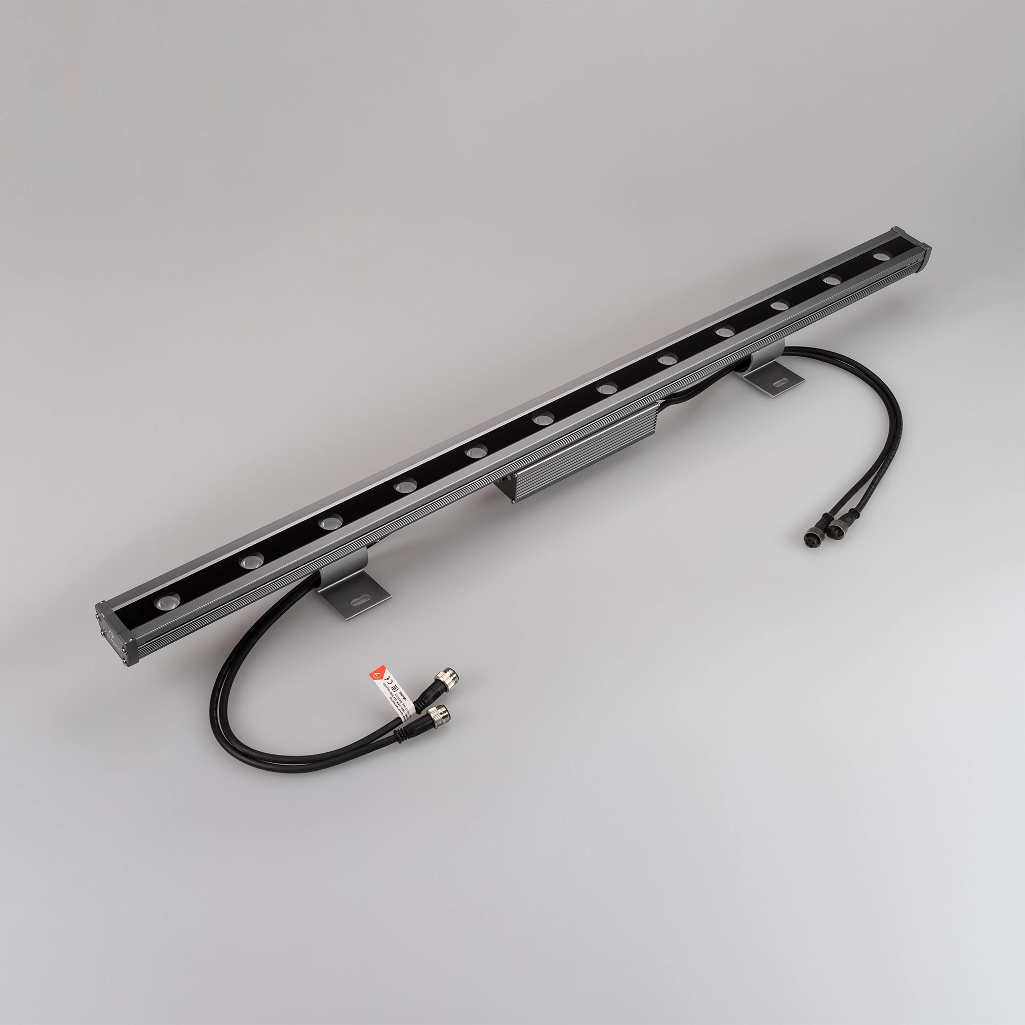 Светодиодный прожектор AR-LINE-1000L-48W-24V обеспечивает мощность 48W и работает от напряжения 24V. Прожектор оснащен 12 светодиодами, каждый из которых содержит 4 кристалла, что позволяет достичь цветовой температуры 4000K и эффектов свечения в красном, зеленом, синем и дневном цветах. Управление осуществляется по протоколу DMX512, что делает его идеальным для профессионального освещения. Угол рассеивания составляет 15x45°, что позволяет равномерно освещать большие площади. Корпус выполнен из алюминиевого сплава и армированного стекла, что обеспечивает надежность и долговечность. Серый цвет корпуса гармонично вписывается в любой интерьер. Прожектор имеет степень защиты IP65, что позволяет использовать его в уличных условиях. Габариты составляют 1000x54x35 мм, что делает его компактным и удобным для монтажа.Потенциальные выгоды для Вас