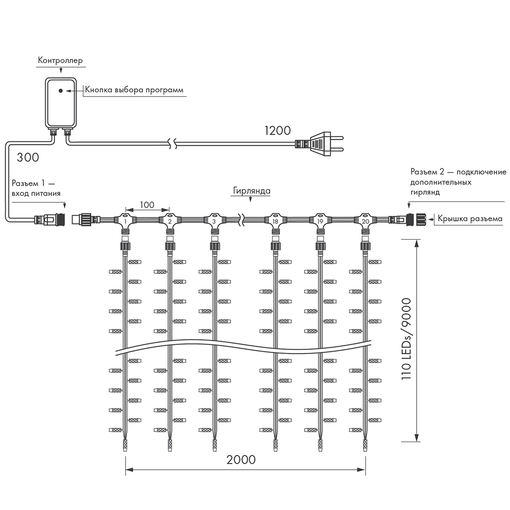 Светодиодная гирлянда ARD-CURTAIN-CLASSIC - идеальное решение для создания удивительных световых эффектов. Размер 2000x9000 мм и 20 ниспадающих нитей длиной 9000 мм обеспечивают впечатляющий визуальный эффект "водопад". Высококачественные белые светодиоды (6000 K) с прозрачной вогнутой линзой создают яркий и насыщенный свет, который преобразит любое пространство. Прозрачный ПВХ провод подходит как для использования в помещении, так и на улице под навесом, что делает гирлянду универсальным элементом декора. Защита IP65 гарантирует стойкость к внешним факторам, обеспечивая долговечность и безопасность эксплуатации.Потенциальные выгоды для Вас