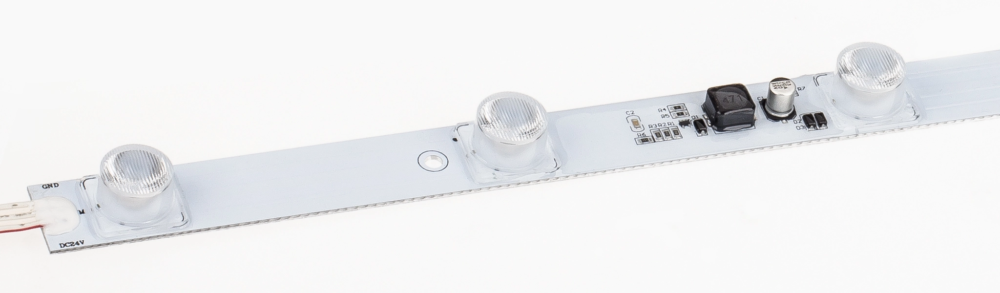 Герметичный светодиодный модуль-линейка IP63, БЕЛЫЙ 6000–7000 К, напряжение 24 В, мощность 15 Вт, св. поток 1050 лм, 5 светодиодов OSRAM, угол 15/45°. Рекомендуемая глубина установки 160–300 мм. Размер 495×27.5×15.6 мм. Гарантия 5 лет.