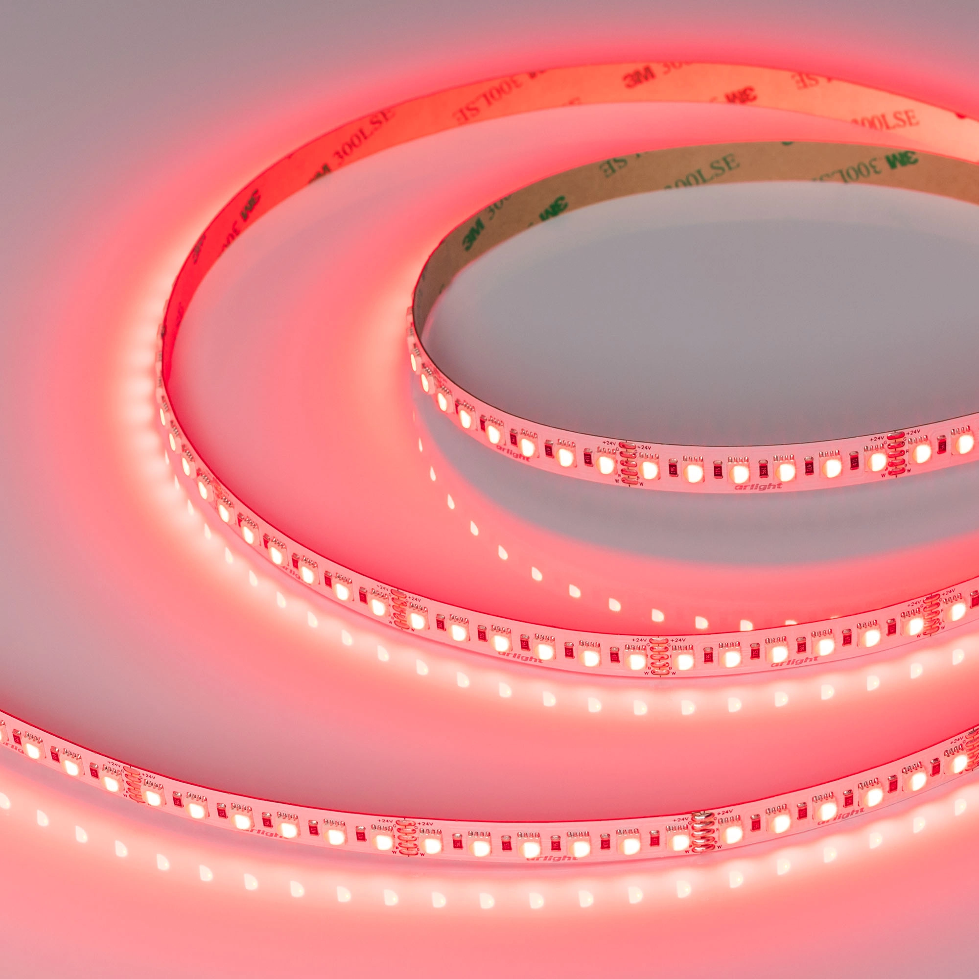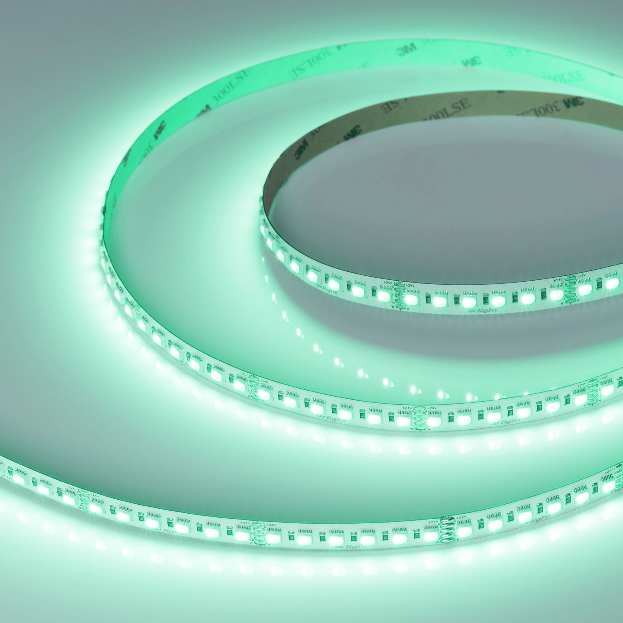 Светодиодная узкая лента RT серии H120. Светодиоды SMD 4040, 120 шт/м, белая плата шириной 10 мм, скотч 3M. Цвет RGB + БЕЛЫЙ 6000K, индекс цветопередачи CRI>90, угол 120°. Питание 24 В, мощность 25 Вт/м (125 Вт на 5 м). Размеры 5000x10x2.1 мм, мин. отрезок 50 мм, 6 светодиодов. Цена за 1 м.