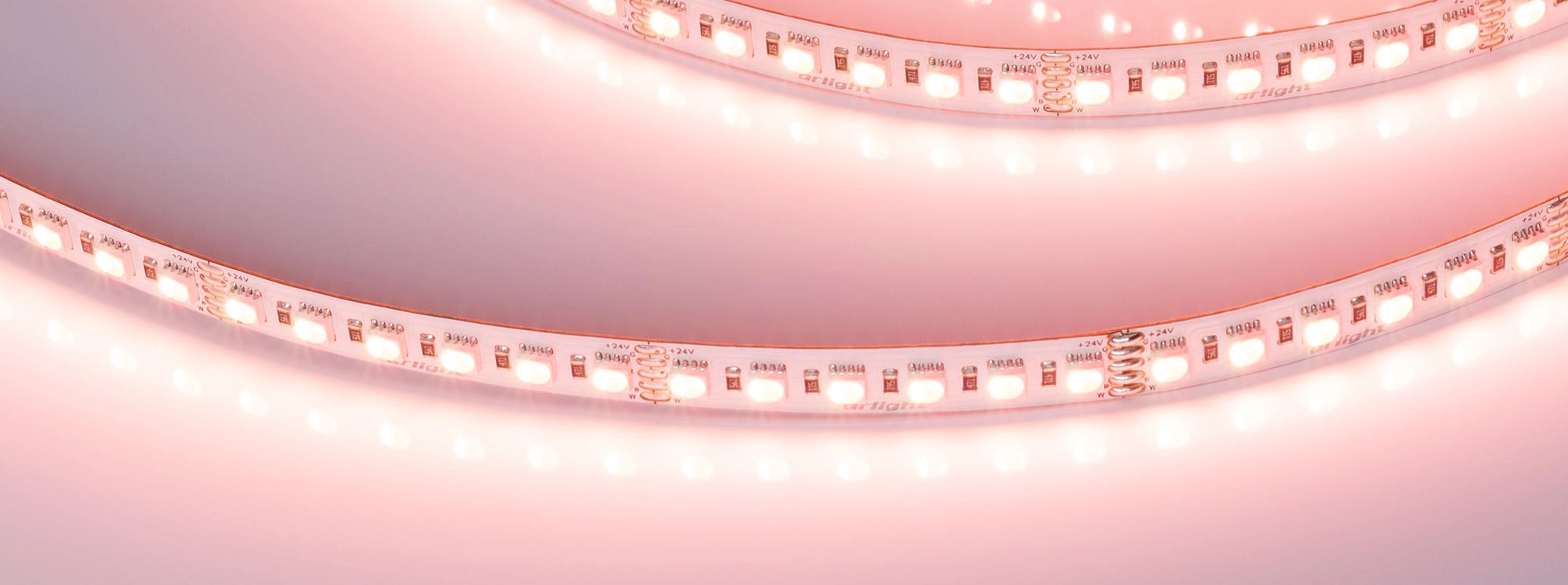 Мощность – один из критериев оценки яркости светодиодной ленты. Традиционно считают, что от мощности ленты напрямую зависит количество света. Ленты Arlight белого цвета выдают от 50 до 155 лм на 1 Вт мощности. Условно считается, что 7 Вт ленты заменяют 1
