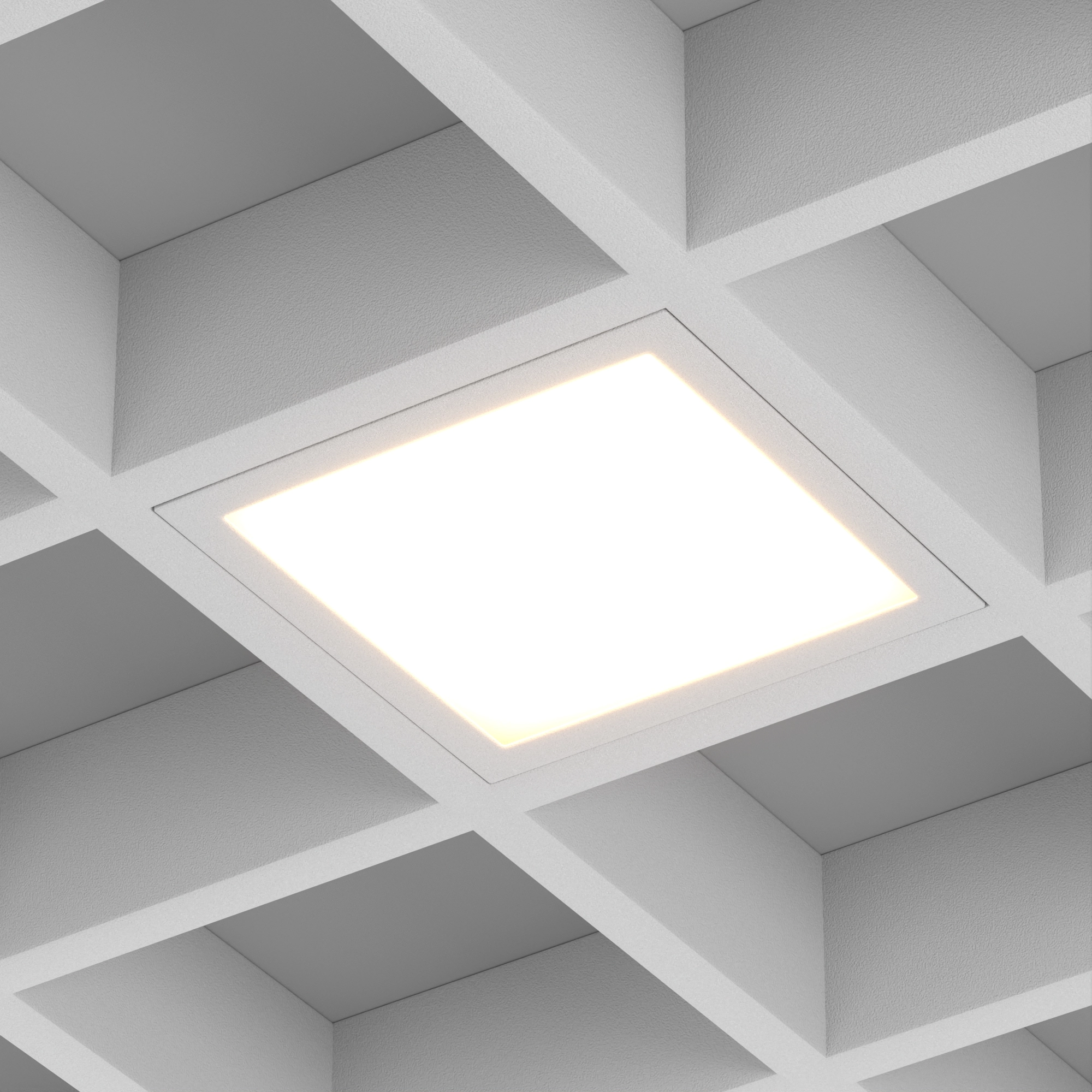 Встраиваемый светильник даунлайт для установки в потолки Грильято с размером ячейки 100х100 мм и высотой направляющих 30, 40 или 50 мм. Мощность 12 Вт, св. поток 1290 лм, 107 лм/Вт, дневной 4000 K, CRI>90, угол 90°, напряжение питания 230 В. Серый квадратный корпус из алюминия (RAL 7045), степень защиты IP40. Размер: длина 90 мм, ширина 90 мм, высота 40 мм. Монтаж встраиваемый, установочное отверстие: длина 90 мм, ширина 90 мм. Драйвер 24-42 В, 300 мА, пульсация <2%.