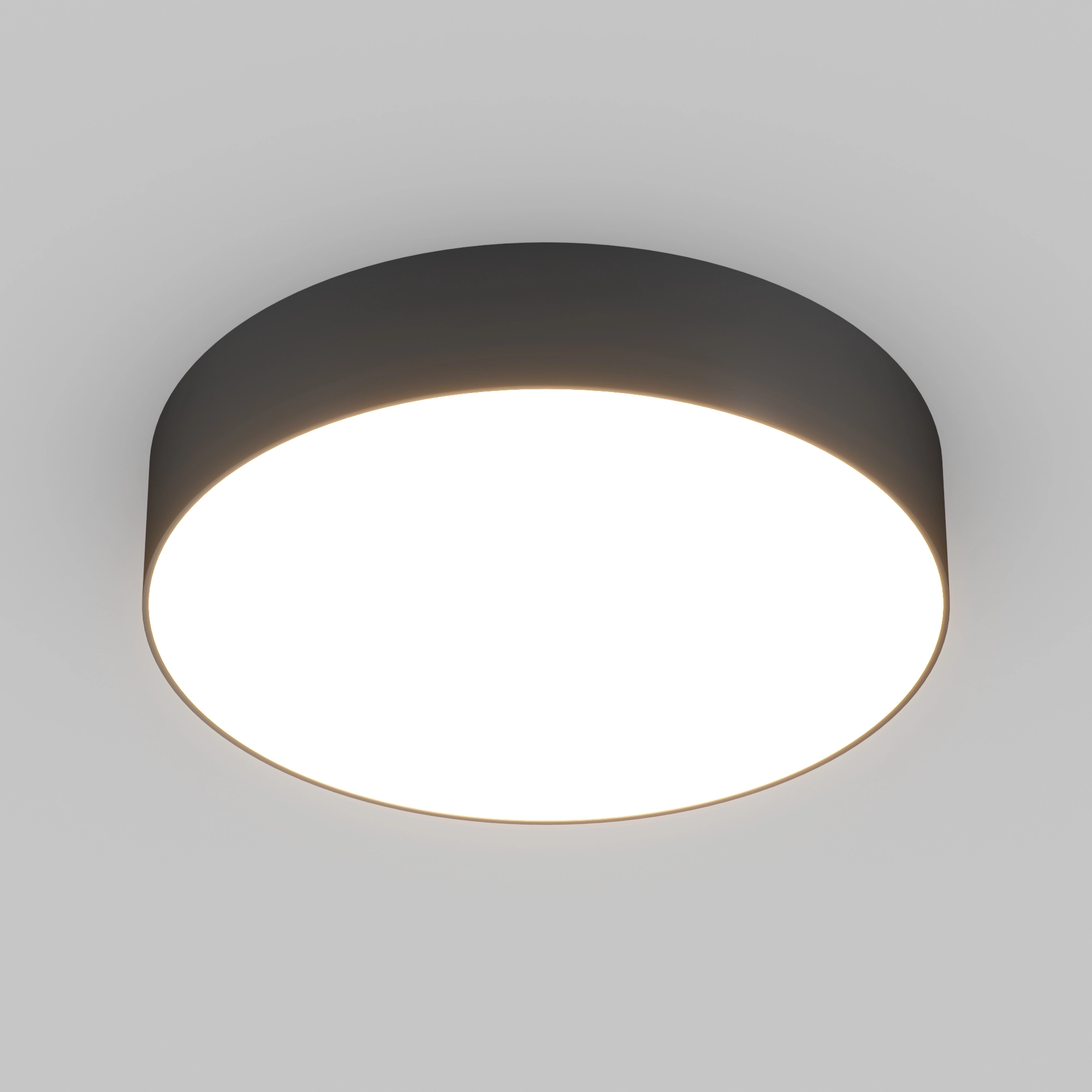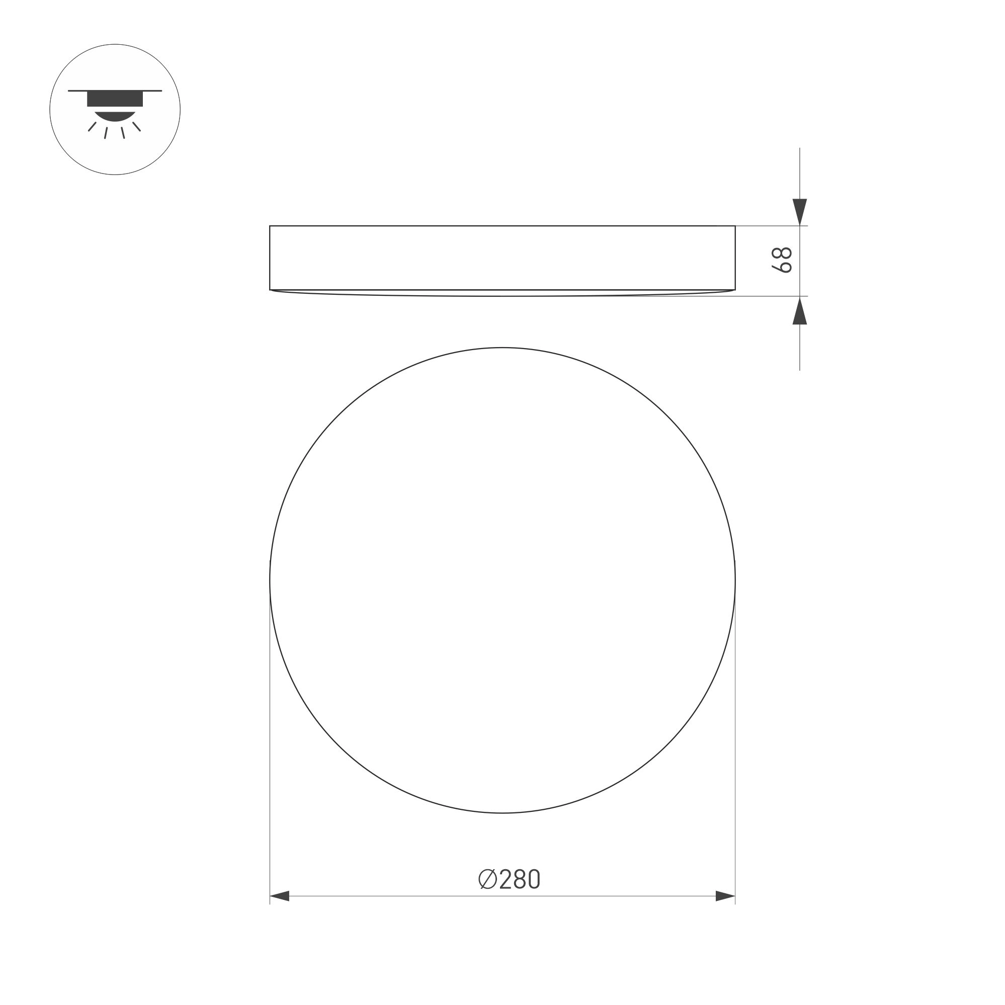 Светодиодный светильник с изменяемой мощностью. Мощность полная 10-15 Вт (переключается), св. поток 1150 лм, 105 лм/Вт, тёплый 3000K, CRI>80, угол 110°, напряжение питания 230 В. Чёрный круглый корпус из пластика, экран PC, степень защиты IP54. Размер: длина 280 мм, ширина 280 мм, высота 68 мм. Монтаж накладной. Драйвер 48-83 В, 175/250 мА, пульсация <5%.