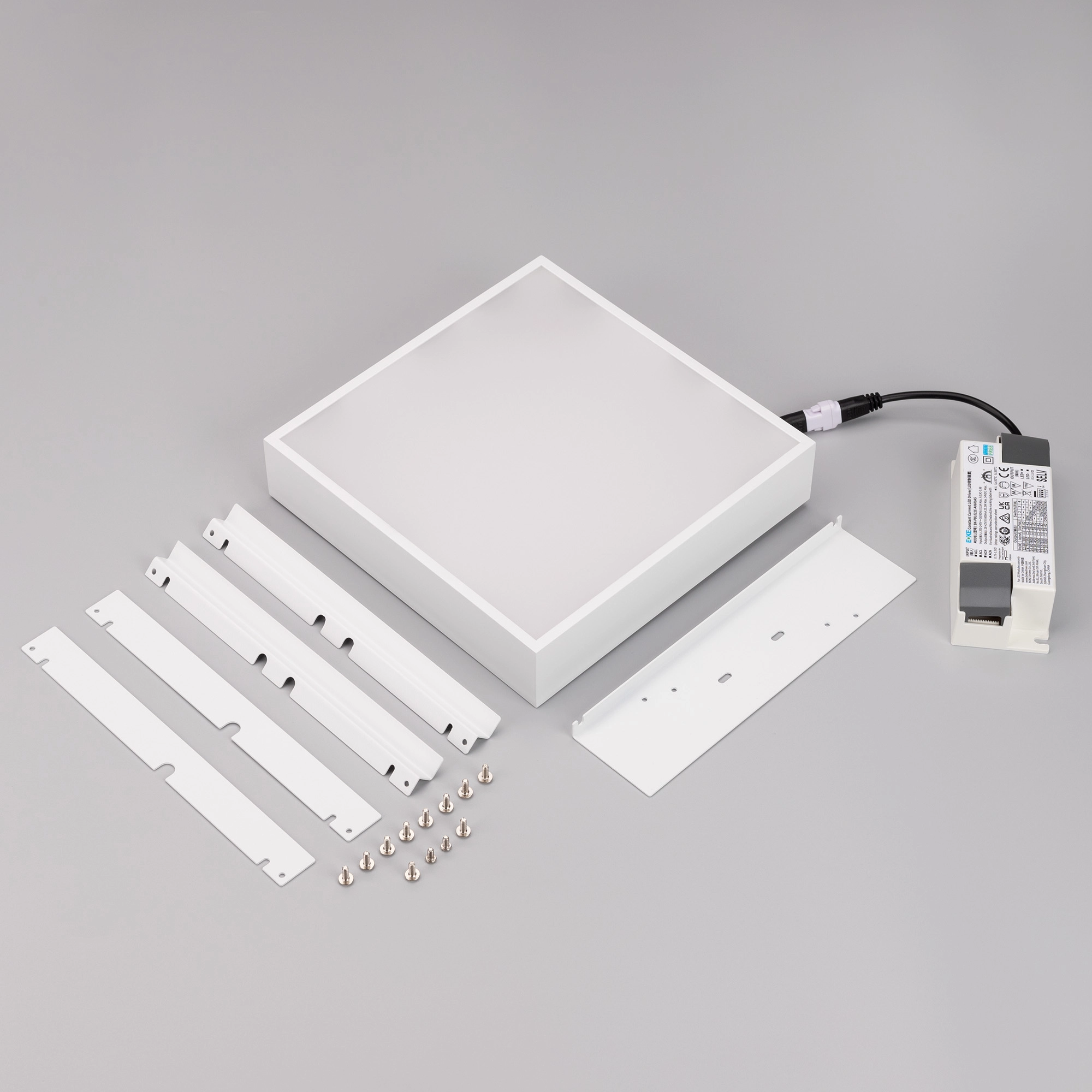 Встраиваемый светильник даунлайт для установки в потолки Грильято с размером ячейки 200х200 мм и высотой направляющих 30, 40 или 50 мм. Мощность 24 Вт, св. поток 2370 лм, 99 лм/Вт, дневной 4000 K, CRI>90, угол 100°, напряжение питания 230 В. Белый квадратный корпус из алюминия, степень защиты IP40. Размер: длина 190 мм, ширина 190 мм, высота 40 мм. Монтаж встраиваемый, установочное отверстие: длина 190 мм, ширина 190 мм. Драйвер 24-40 В, 600 мА, пульсация <1%.