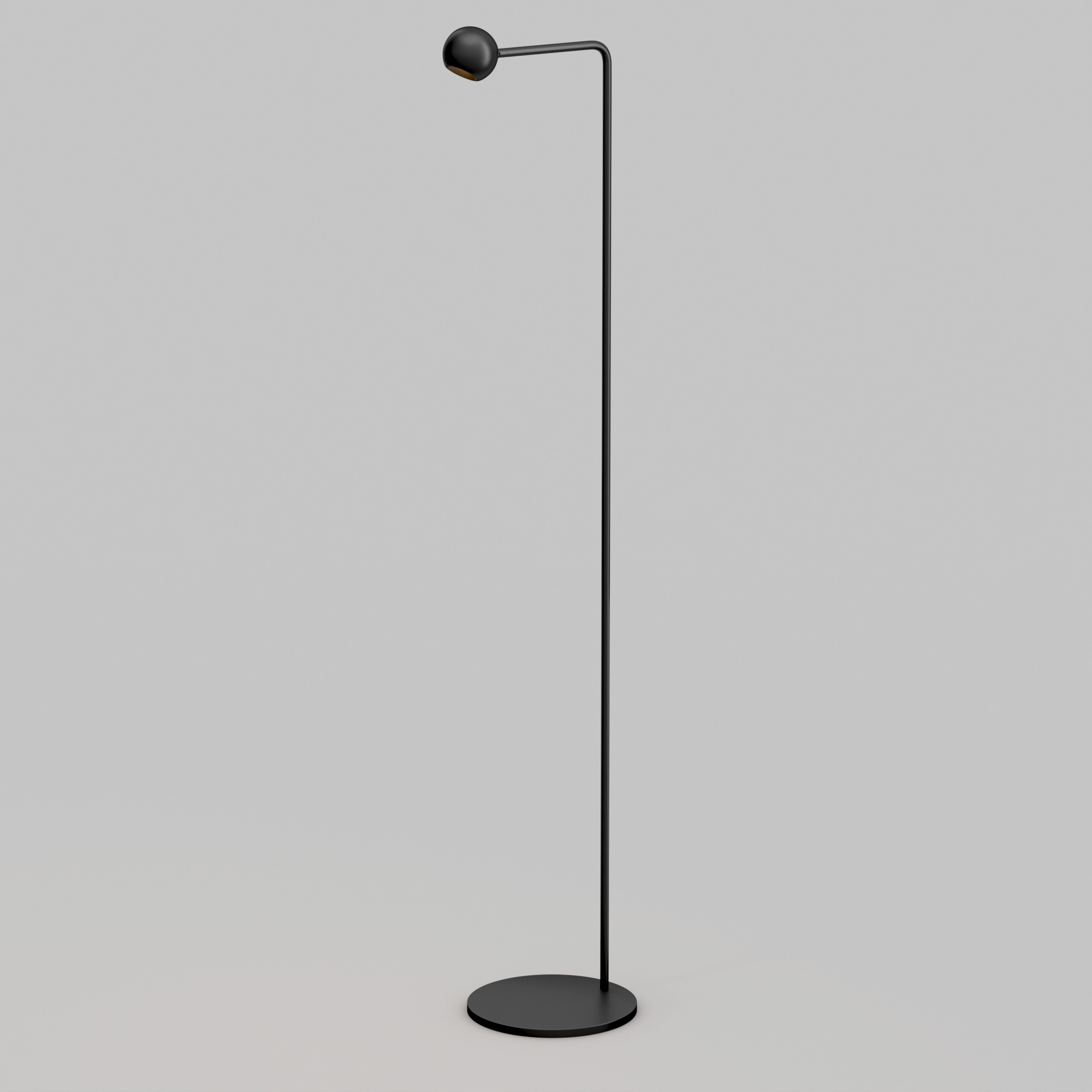 Декоративный напольный светильник. Мощность 6 Вт, св. поток 540 лм, 90 лм/Вт, теплый 3000К, CRI>90, угол 30°, напряжение питания 230 В. Черный корпус из алюминия (основание, ножка, светоизлучаль в форме шара), степень защиты IP20. Размер основания Ø210×11 мм, размер ножки Ø12,5×1220х160 мм, размер светоизлучателя Ø65×55,5 мм. Длина провода 193 мм, питание от сети 220-240V.